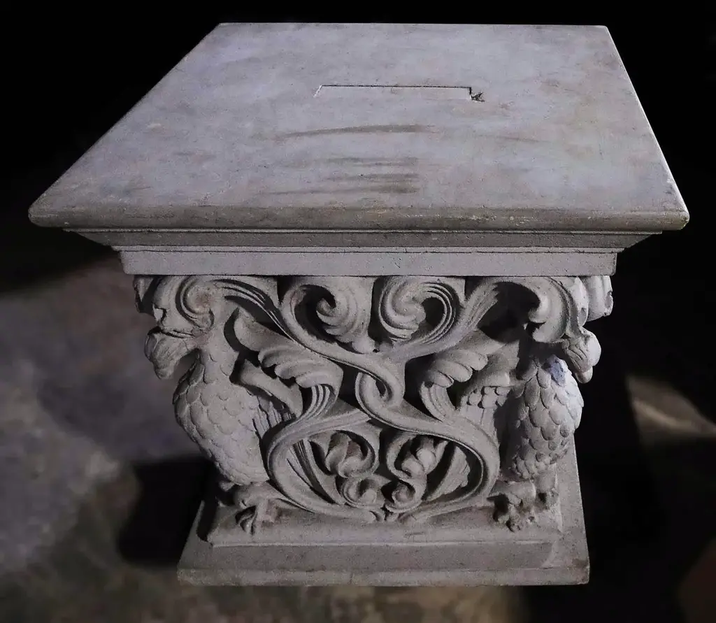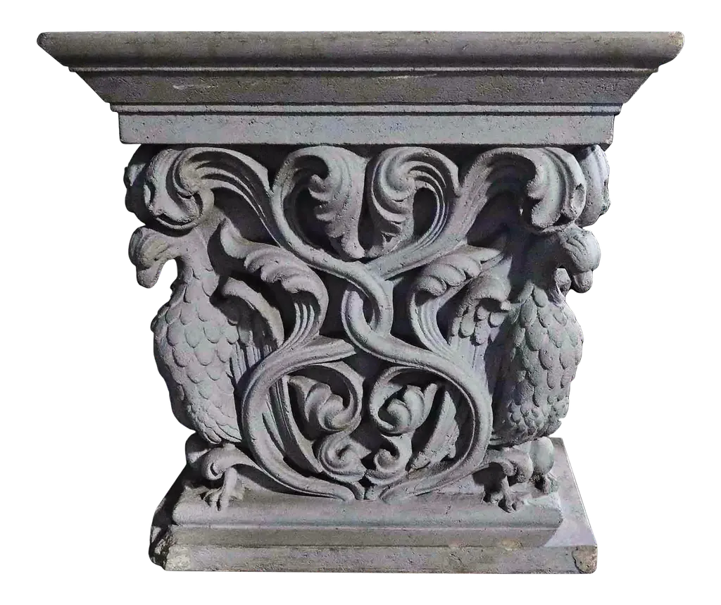 Antique Table Or Pedestal Base Neo-Romanesque Style Cast Stone