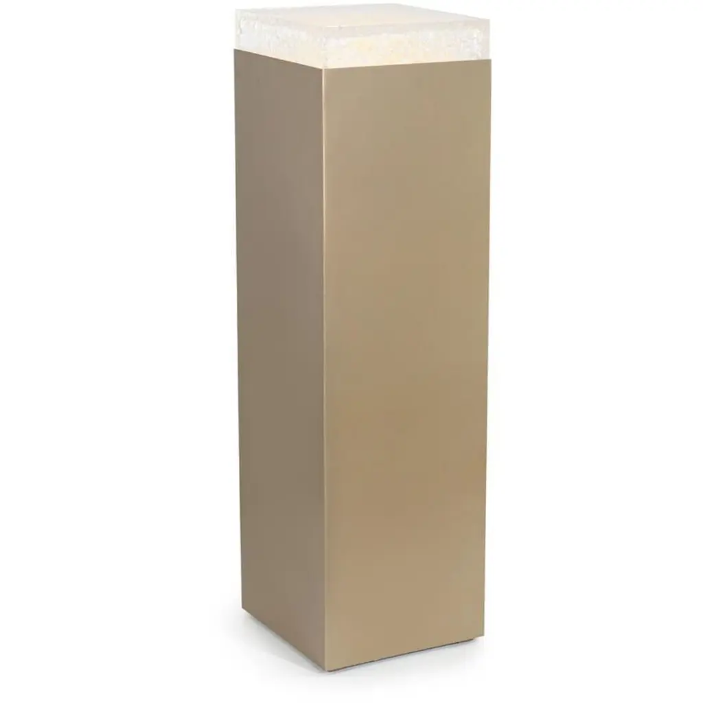 The Edda Pedestal showcases a chic, minimal profile that is greatly elevated by subtle textural interplay. The metallic body is adorned in a Brushed Nickel finish, beautifully matching the icy look of a gorgeous clear acrylic tabletop. A stunning accent table on its own, the Edda can be placed alongside its many different variants to allow for creative custom arrangements.