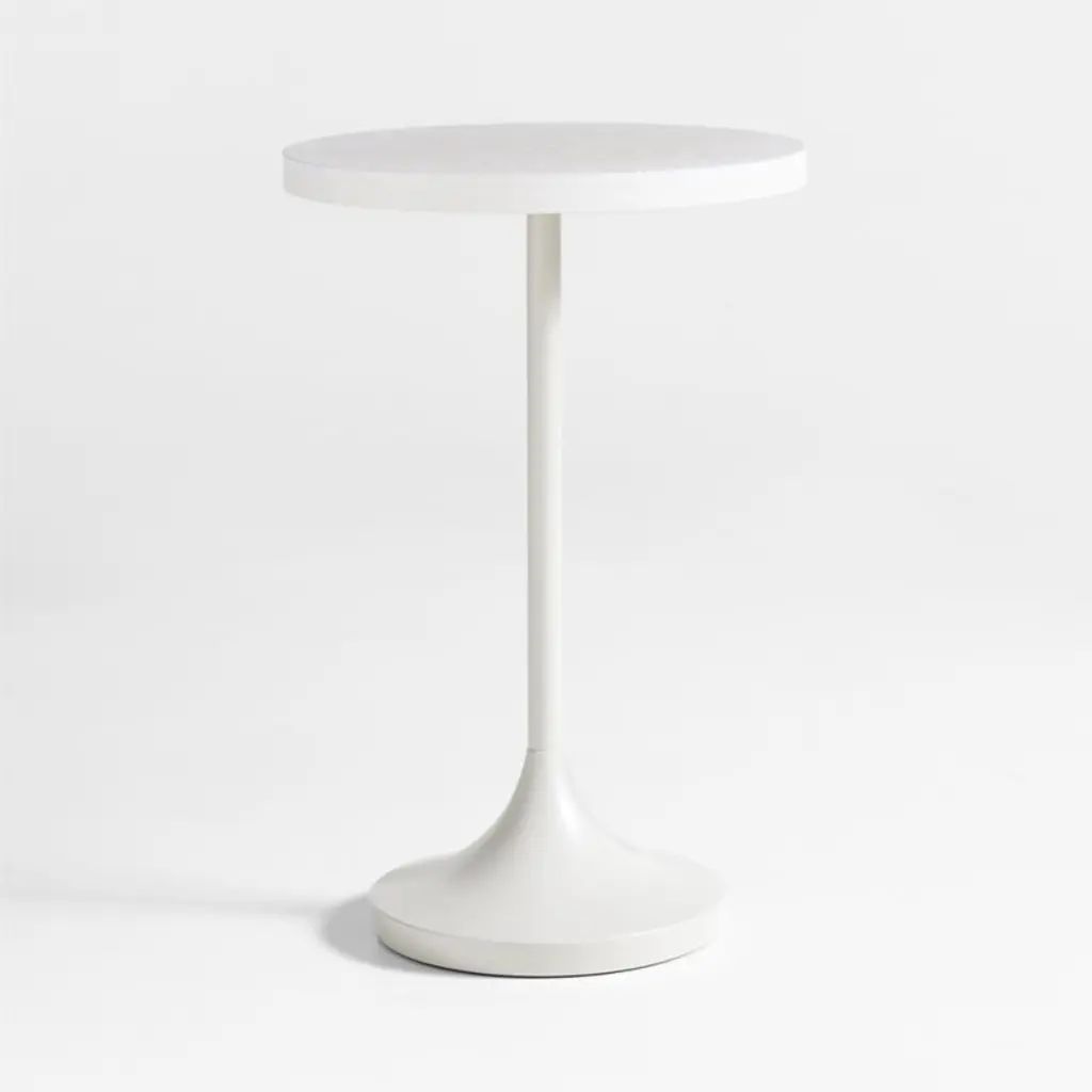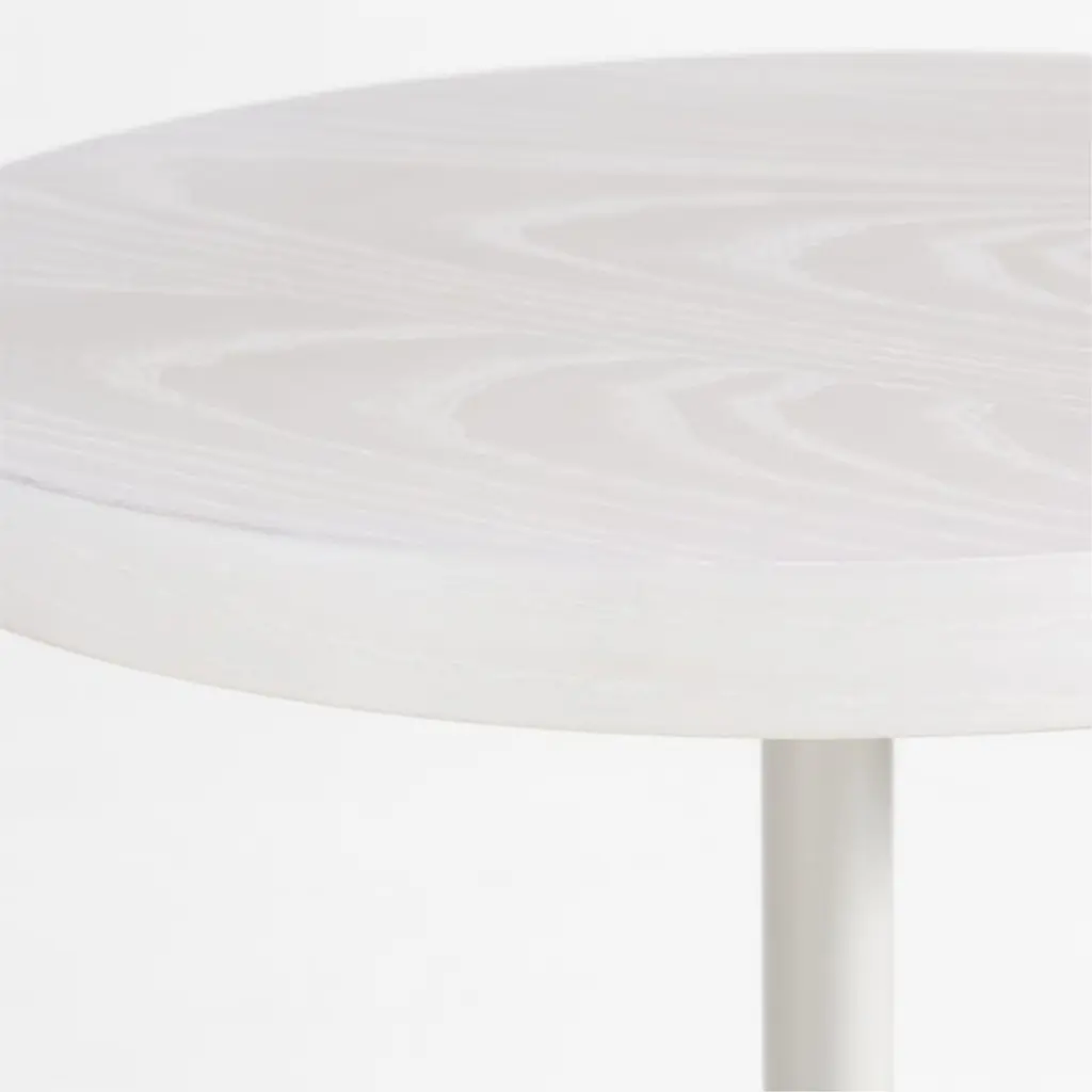 Cool and curved, our two-tone Emme Round Pedestal Table is the perfect perch next to a kid's bed or favorite nursery seat. With cool mid-century style, the table boasts a whitewashed wood top and a sleek metal frame in neutral cozy grey. Pair it with our Emme lighting collection or Archie bedroom furniture for a modern, coordinated look.