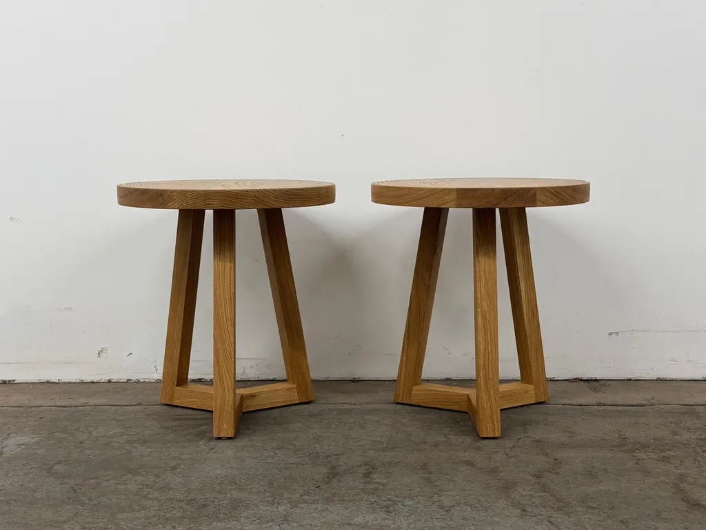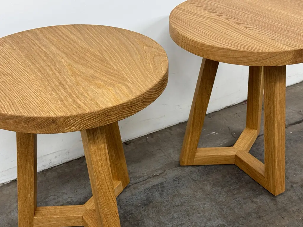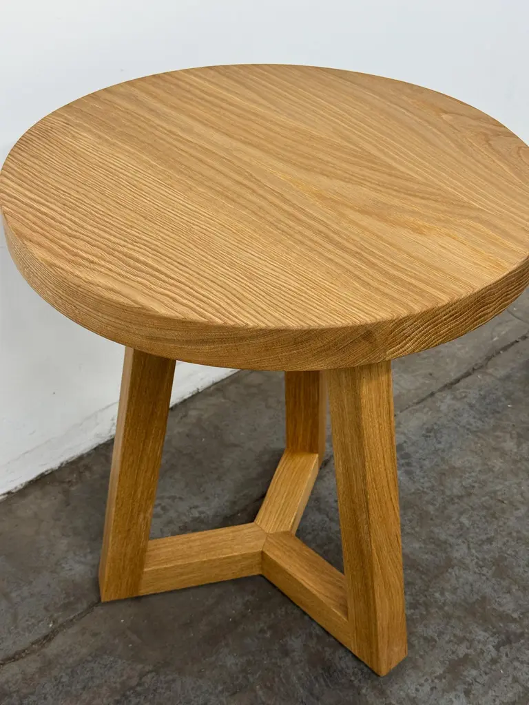 The Enzo round end table is designed to effortlessly blend with contemporary, transitional, and traditional decor. The table is very customizable, with a wide array of diameter and height options, you can design the perfect end table for your needs. We believe in the enduring beauty of handcrafted 100% solid wood furniture, which is why each table is constructed using traditional mortise and tenon joinery, guaranteeing exceptional strength and durability. The tabletop thickness ranges from 1.25" to 1.5" depending on the chosen diameter and offers a premium feel and will last you for decades to come. Each table is finished with Rubio Monocoat hard/wax oil, which enhances the natural beauty of the wood and provides exceptional resistance to daily use and wear.Proudly made in Portland, Oregon, USA, our tables arrive fully assembled, ready to integrate into your space.
