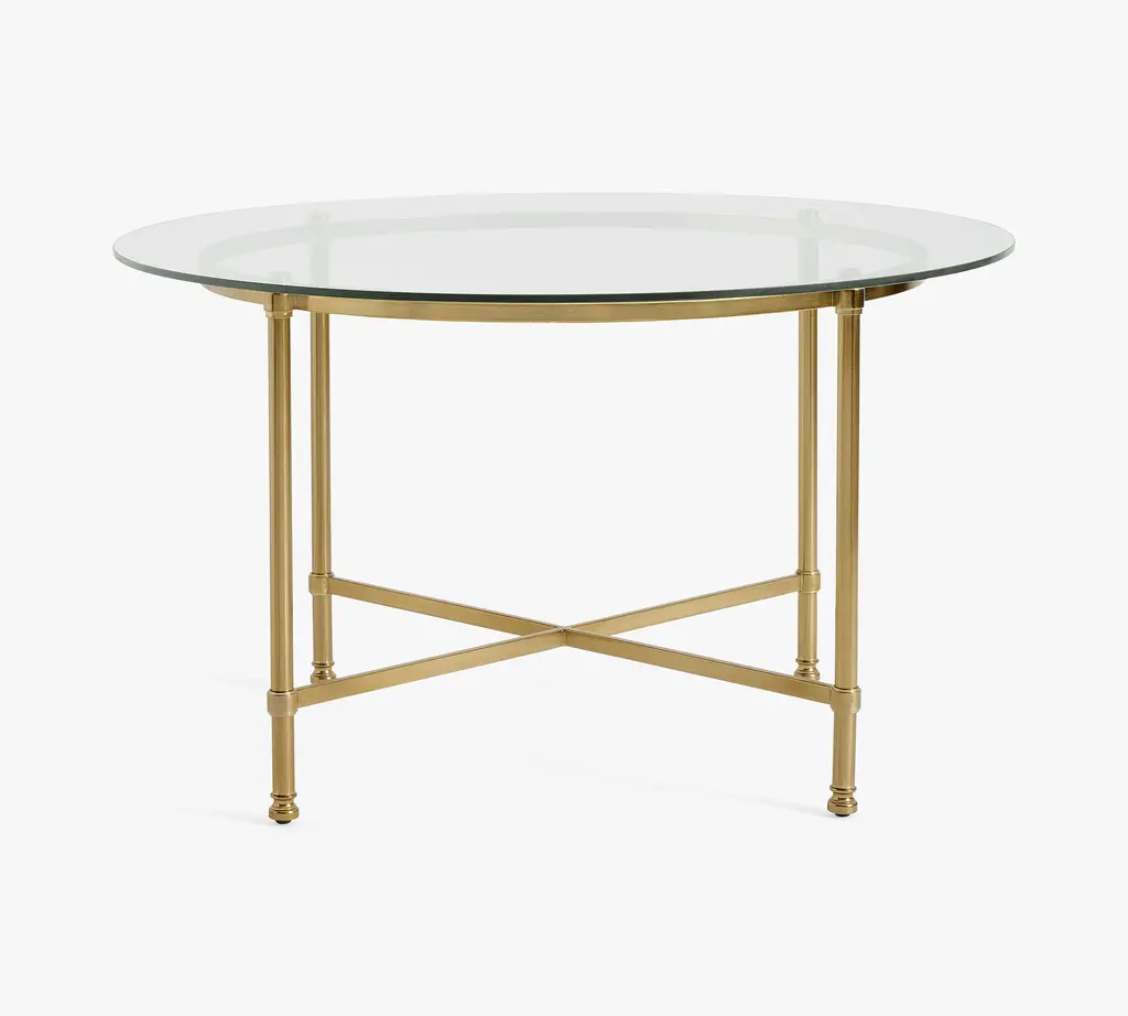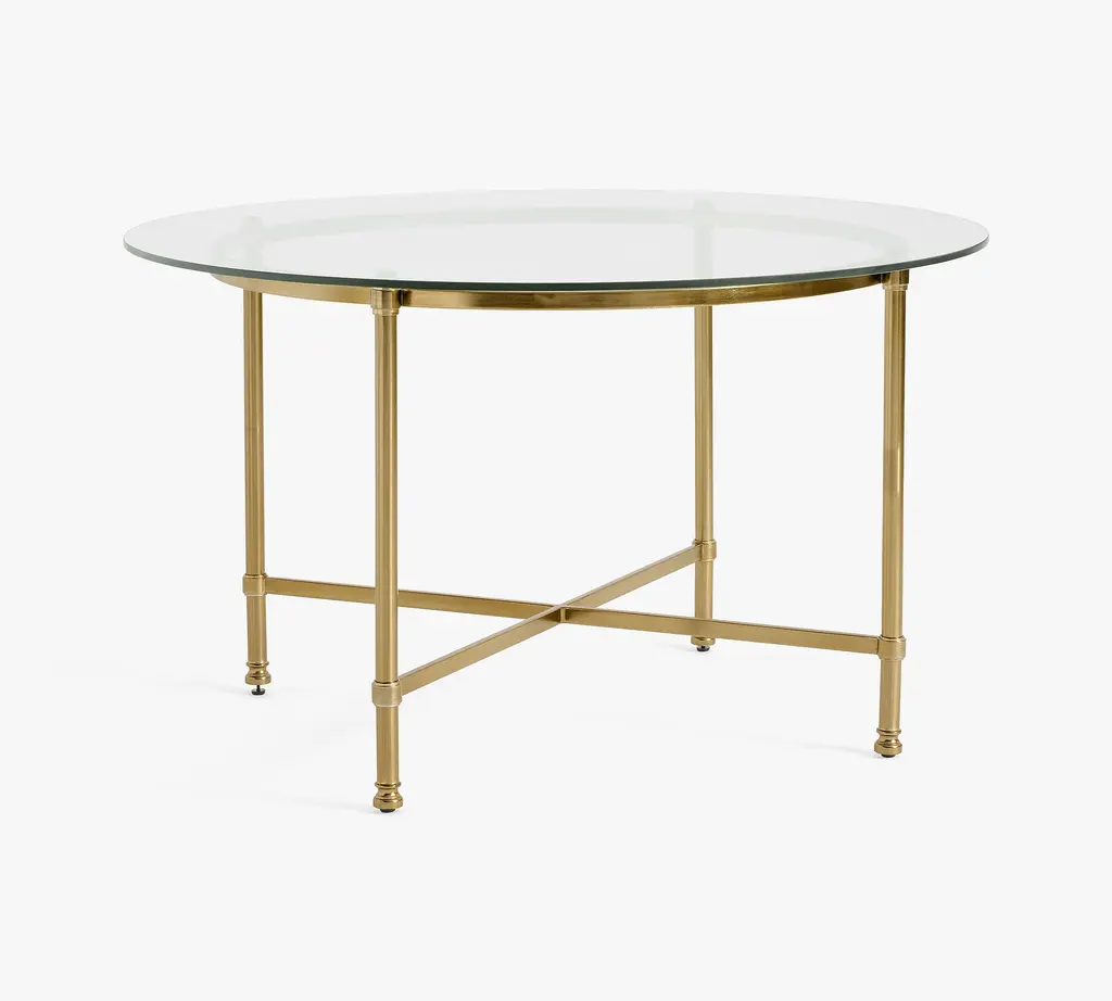 Everson’s simple lines and clear surfaces keep your space looking open and light. Crafted from tempered glass and steel in a choice of antique finishes, the table has subtle ornamental joint and foot detailing that transcends time and trends.