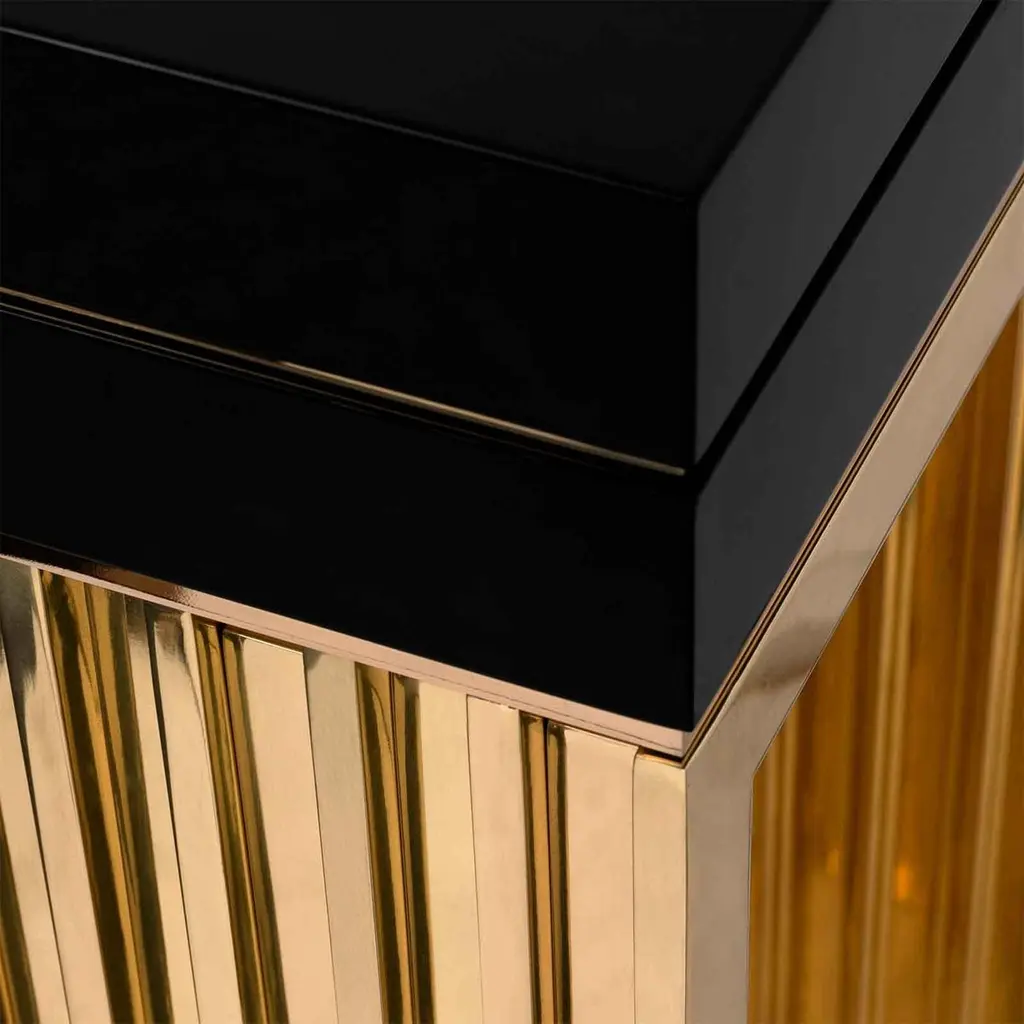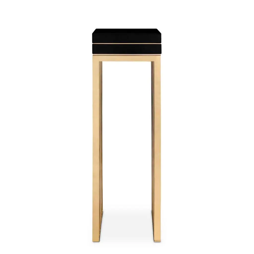 Pedestal fall with black lacquered woodentop and with polished solid brass base.