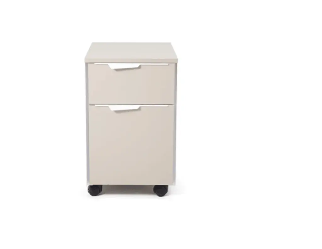 FAN CREDENZA CABINET IS CONSTRUCTED OF PODWER COATED METAL . WHEELS INCLUDED IN BLACK METAL FRAME WITH WALNUT BODY.2 DRAWER CABINET