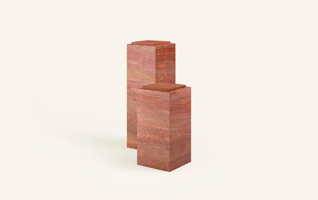 Form(la) Cubo Pedestal 12”l X 12"w X 36”h Travertino Rosso Vc