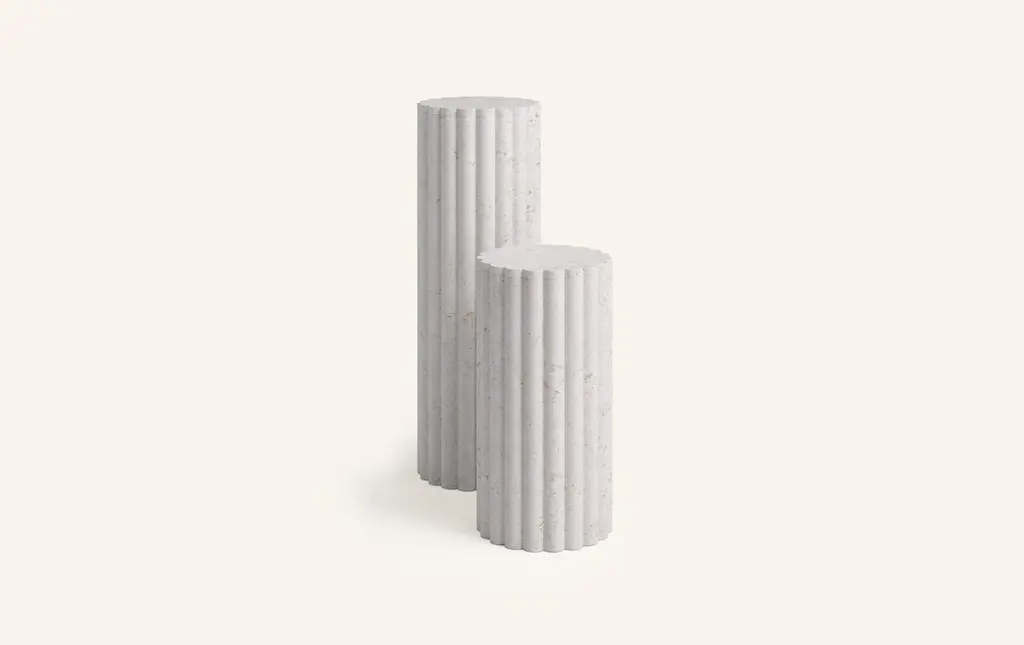 OUR MOST COVETED COLLECTION AND MODERN TWIST ON AN ANCIENT ROMAN CLASSIC. RECENTLY REFRESHED WITH A MORE PLAYFUL AND ROBUST PROFILE.DIMENSIONS (PEDESTALS SOLD INDIVIDUALLY):12”L x 12”W x 24”H: - 12"Ø FLUTED BASE WITH 2" FLUTESCONSTRUCTION:- 3/4" THICK TOP & BASE- HOLLOW CONSTRUCTION USING 3/4” STONE SLAB- FELT LINING TO BOTTOM OF BASE FOR FLOOR PROTECTIONWEIGHT:12”L x 12”W x 24”H: - GROSS WEIGHT INCLUDING WOOD CRATE 178LBS