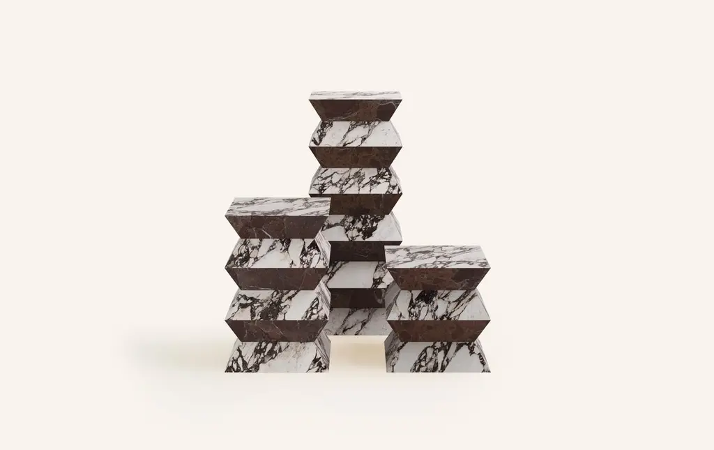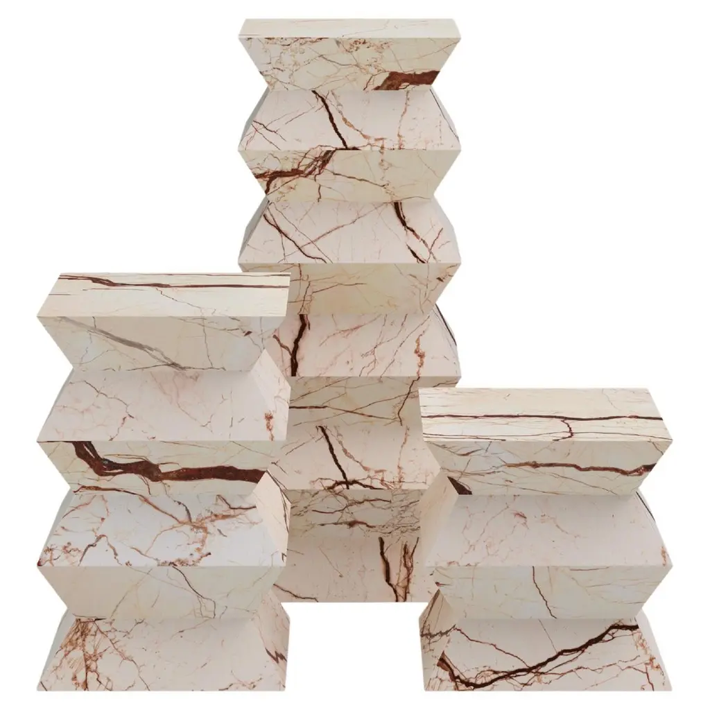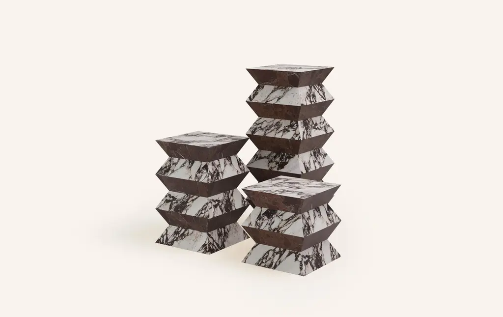 A BOLD AND EXPRESSIVE FORM WHERE GEOMETRY AND HARMONY COLLIDE. ITALIAN FOR WRINKLE, 'GRINZA'S ZIG-ZAG STRUCTURE' IS BOTH TIMELESS AND ELEGANT. DIMENSIONS (PEDESTALS SOLD INDIVIDUALLY):16”L x 16”W x 40”H: - WRINKLED BASE WITH 4" FOLDSCONSTRUCTION:- 3/4" THICK TOP & BASE- HOLLOW CONSTRUCTION USING 3/4” STONE SLAB- FELT LINING TO BOTTOM OF BASE FOR FLOOR PROTECTIONWEIGHT:16”L x 16”W x 40”H: - GROSS WEIGHT INCLUDING WOOD CRATE 304LBS