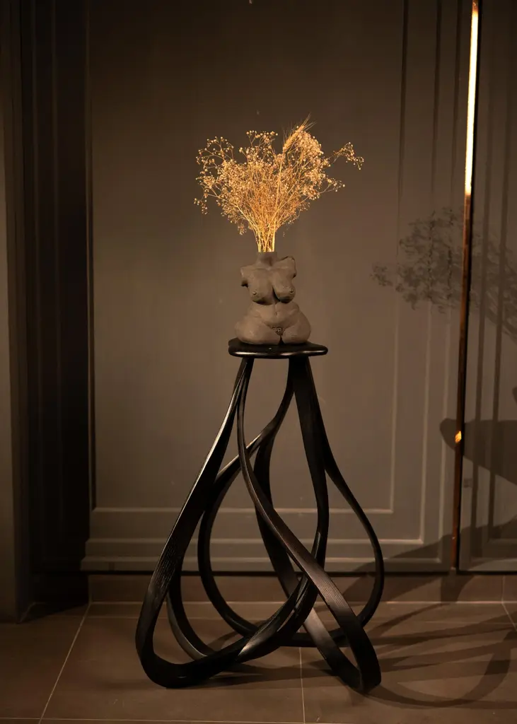 Foyer Table No. 3 - Vrksa Series - Pedestal Table In Black By Raka Studio