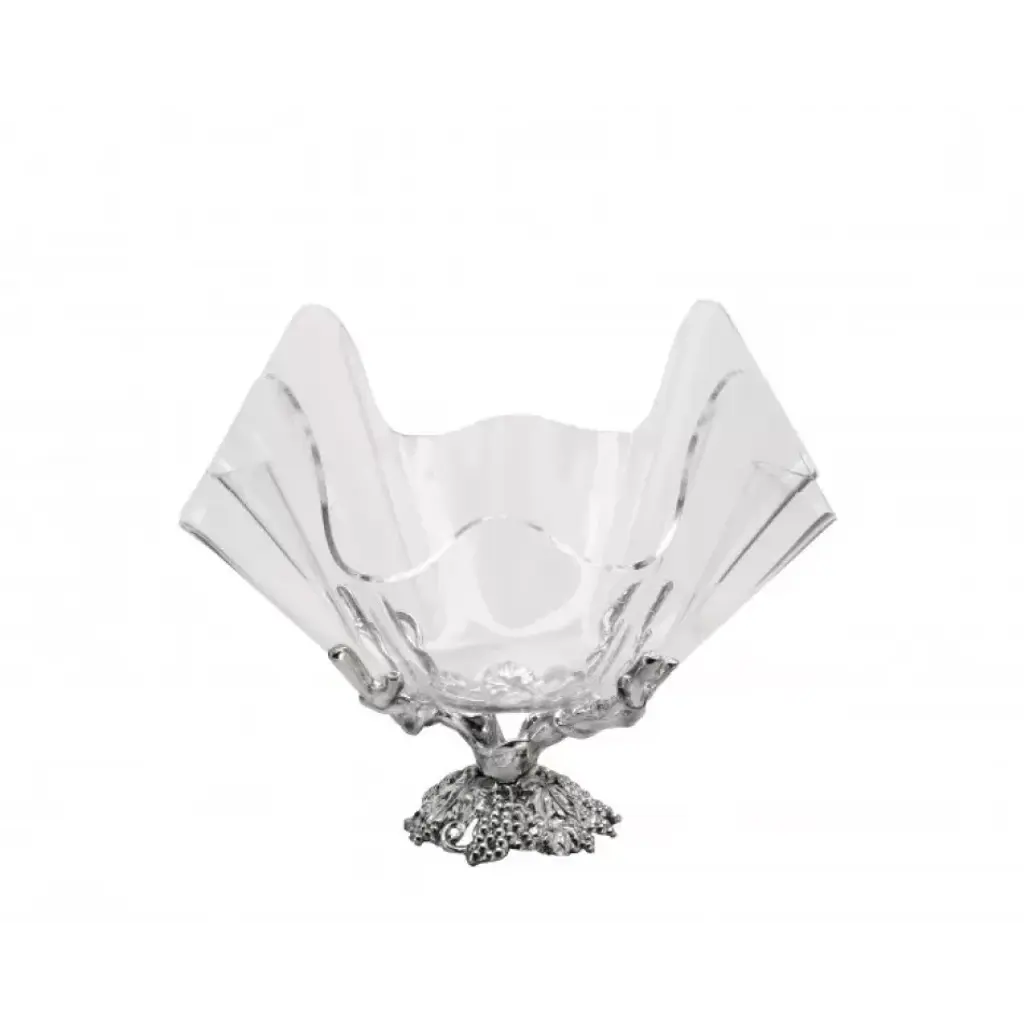 Satisfy dessert cravings for a large group of people with this stylish, 17-inch Grape Cake Pedestal Sheet from Arthur Court. Vines outline the border and legs of the handmade, sand-cast pedestal, while veiny leaves and bundles of grapes fill in the design. A rectangular, glass dish sits atop the piece, accentuating the brilliant luster of the aluminum base.