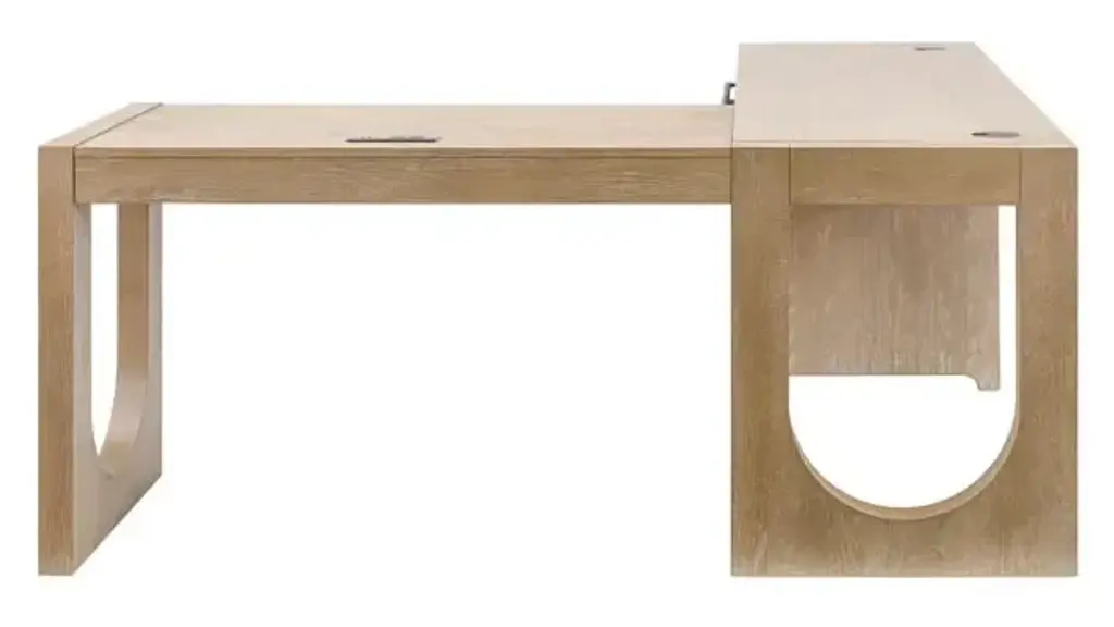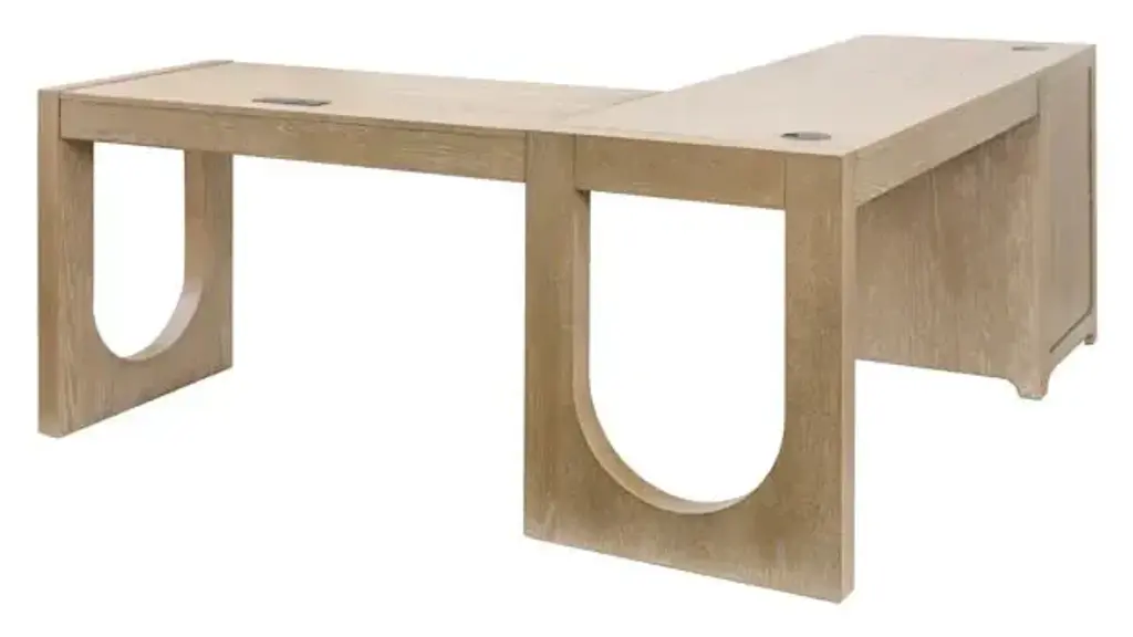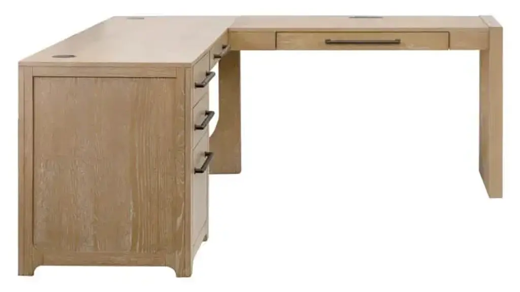 Introducing our Canyon Drive Office Collection meticulously crafted to elevate your workspace. Embracing a timeless aesthetic each piece boasts a natural oak finish delicately enhanced by a light glaze exuding sophistication and warmth. Featuring heavy bar pull hardware and bold U shapes on the desks and storage solutions that are sure to make a statement in any workspace. Center pencil drawer allows you access your keyboard with ease while leaving plenty of desktop space to work. Two storage drawers allow for maximum storage capacity and keeps your desk free from clutter. One file drawer holds hanging files to keep papers organized and secure. Integrated desktop wire-management grommets help organize cables and keep the desktop clutter-free. Power center with USB/AC outlets allows for multiple devices to be plugged in with ease. Heavy bar pull hardware and bold U-Shape enhance the contemporary modern style. Finished on all sides for placement anywhere in any room. High quality solid wood construction for durability and long lasting use. Overall Dimensions: 68" W x 72" D x 30" H. Ships ready for easy assembly.