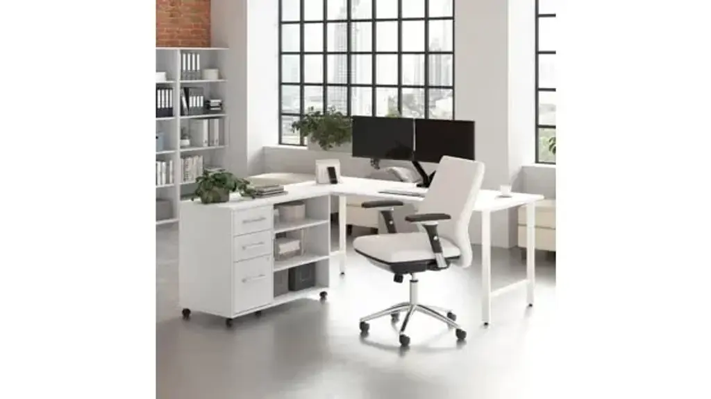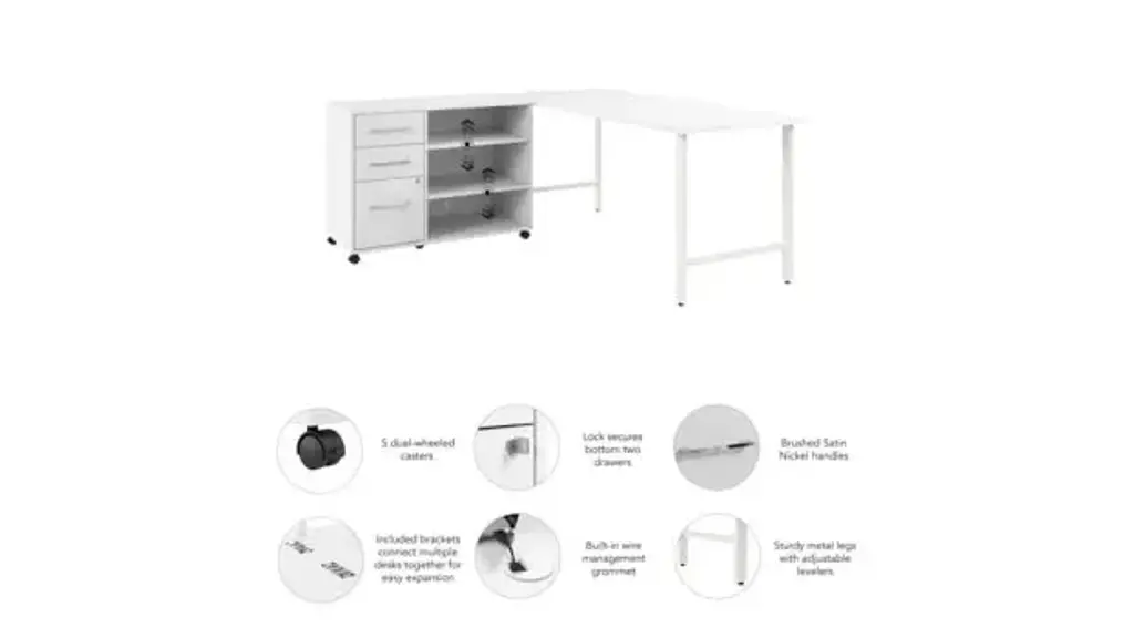 Homedesksl Shaped Desksl Shaped Single Pedestal Desks72in W X 30in D Computer Desk And Storage Cabinet With Drawers And Shelves By Bush
