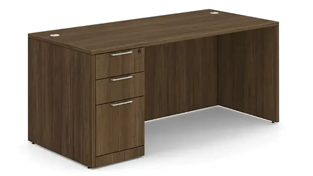 Uncomplicated styling with clean lines creates a solid workspace with the Bush Business Furniture Series C 72"W Bow Front Shell Desk and two 3-Drawer Mobile Pedestals. Designed to adapt and grow, the 72"W Bow Front Shell Desk features a durable Thermally Fused Laminate top with high resistance to scratches and stains to keep its good looks. An integrated wire management system provides easy concealment of cables and wires to maintain the clean lines of the desk through desktop and leg grommets. Ample storage is available in the two 3-Drawer Mobile Pedestal units, offering versatility in mobility as they maneuver to fit easily under the desktop or any other location. With the two units featuring a combined four box drawers to keep office supplies close to the work surface, and two full-extension lockable file drawers allow full access to letter, legal and A4 size files, everything you need is right at your fingertips. With a finish to match any decor, additional Bush Business Furniture Series C pieces allow for additional configurations as your needs evolve and grow. Solid construction meets ANSI/BIFMA test standards. American made with U.S. and imported parts. Desk Dimensions: 71.10"W x 36.06"D x 29.80"H. Each Mobile File Cabinet Dimensions: 15.71"W x 20.20"D x 27.79"H. Ships ready for easy assembly, Mobile File Cabinets ship fully assembled.