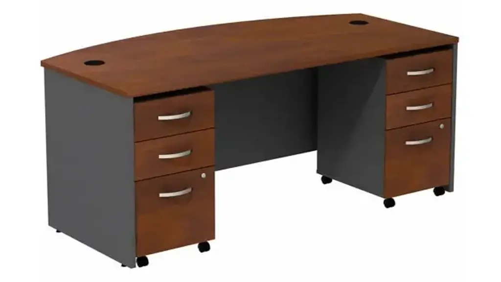 Homedesksstand-Alone Desksstand-Alone Double Pedestal Desks72in W Bow Front Desk With (2) Assembled 3 Drawer Mobile Pedestals By Bush