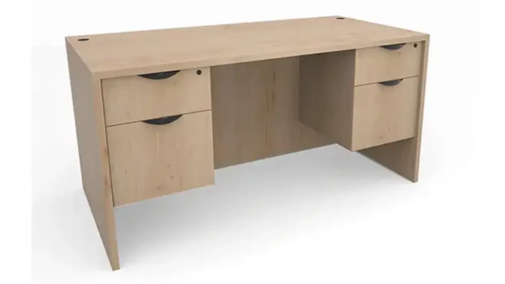 This Desk is Reversible 47" Single Pedestal Box Box File Desk features a durable laminate finish. High-impact 3 mil Tough Edge is standard on all tops, end panels and drawer fronts. It's strength and durability helps protect the edge from scratches, chips and dents. Desk includes a locking BBF pedestal with two box drawers and one file drawer. File drawer accommodates letter or legal size hanging files. Available in several laminate finishes. Ships ready for easy assembly - pedestal ships assembled.