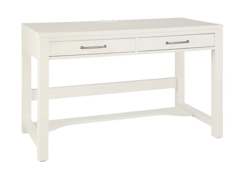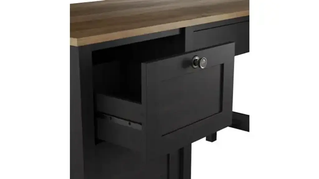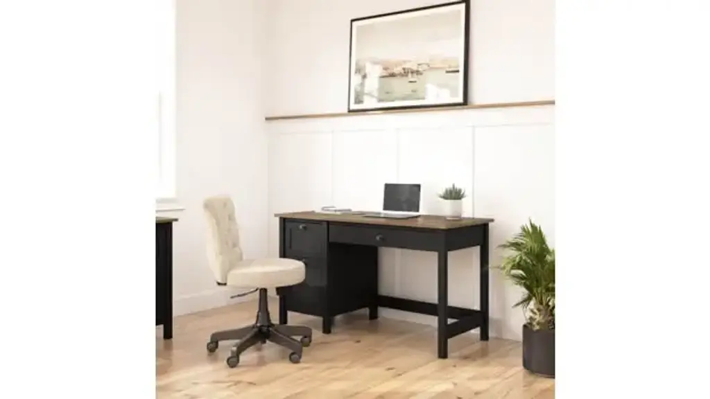Stay on top of your daily tasks with a workspace that suits your casual home. Highlighted by its relaxed modern farmhouse style, the Bush Furniture Mayfield 54"W Computer Desk with Drawers also includes plenty of practical features to keep you feeling productive. Spread out with all your materials on a durable 54"W x 23"D work surface that supports a computer, books and more with a weight capacity of 200 lbs. A letter-size file drawer and a small box drawer ensure that the papers and office supplies you need are always within reach. A larger drawer pulls out to provide easy access to your keyboard or laptop and features a convenient flip down front that folds up neatly when not in use. Dark Bronze drawer pulls complement the writing desk's two-tone finish for an easy going style you're sure to love. Add the coordinating Mayfield Desktop Organizer (sold separately, item # MAH154V2P-03) to keep your home office or living room in order with eight cubby spaces, two pencil drawers and an accessory shelf for your phone or tablet. This farmhouse desk with storage is tested to meet ANSI/SOHO quality standards for safety and performance. See the full collection for coordinating items available. Overall Dimensions: 54.02"W x 23.19"D x 30"H. Ships ready for easy assembly.