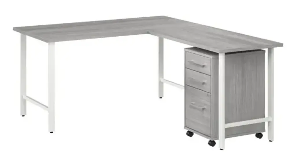 The Veloce series is durable, sturdy and esthetically open & modern. Desk features a 60" x 24" worksurface, available in 6 finishes. Mobile pedestal is finished in grey to match the base of the desk. Locking pedestal with black cushion top features 2 box (utility) drawers & a file drawer. Overall dimensions are 60"W x 24"D x 29"H. Ships ready for easy assembly.