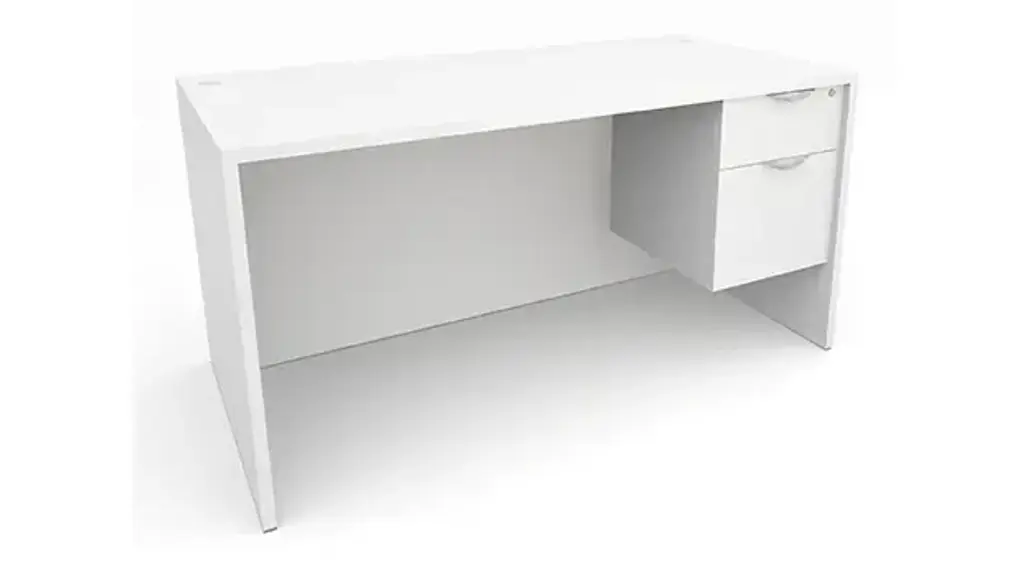 This Desk is Reversible 66" Single Hanging Pedestal Desk features a durable laminate finish. High-impact 3 mil Tough Edge is standard on all tops, end panels and drawer fronts. It's strength and durability helps protect the edge from scratches, chips and dents. Desk includes one locking pedestal with one box drawer and one file drawer. File drawer accommodates letter or legal size hanging files. Available in several laminate finishes. Ships ready for easy assembly - pedestal ships assembled.