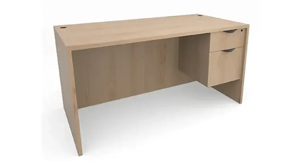 This Desk is Reversible Picture shown is a 47" Desk - Actual Desk measurement will be 66" x 30" 66" Single Pedestal File File Desk features a durable laminate finish. High-impact 3 mil Tough Edge is standard on all tops, end panels and drawer fronts. It's strength and durability helps protect the edge from scratches, chips and dents. Desk includes a locking FFpedestal with two file drawers. File drawers accommodate letter or legal size hanging files. Available in several laminate finishes. Ships ready for easy assembly - pedestal ships assembled.