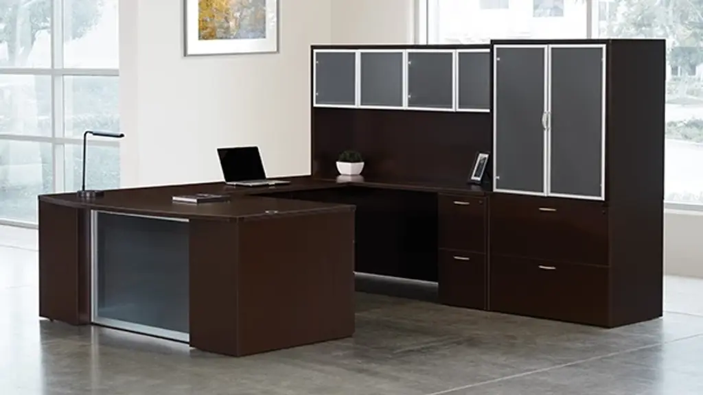Homedesksu Shaped Desksu Shaped Desks With Hutch66in X 96in Complexion Single Bbf Pedestal U-Desk With 2 Wood Door Hutch By Pbd Furniture
