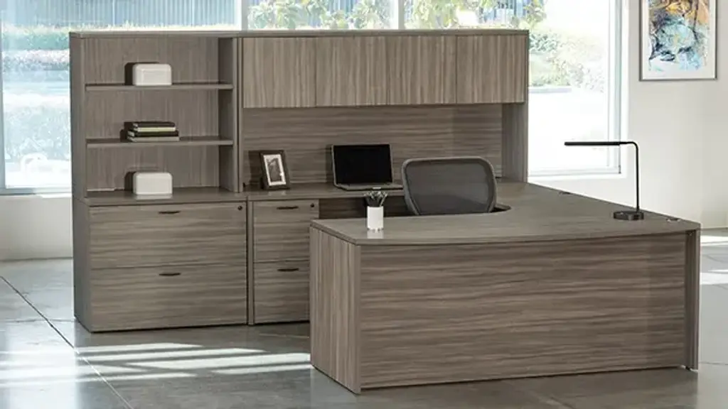 This Desk is Reversible comPLexion U Shaped Desk offers a wonderful mixed material look that can be used in any work environment. Laminate top is 1" thick and is supported by the OnTask metal legs. Available in several laminate finishes and 2 metal colors. Creates a great look in your home or office with combination of metal and laminate components. Ships ready for easy assembly.