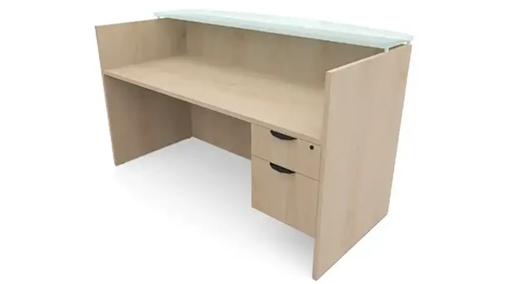 This Desk is Reversible The Potenza Series propose a unique versatile design. Our low glared thermofused laminate offers a rich wood look & feel. The matching 3mm PVC edge offers comfort & protection. U desk includes a box/box/file pedestal & a file/file pedestal. Desk with white glass modesty panel measures 72" x 42" x 29"H. Curved bridge measures 42"W x 20"D x 29"H. Credenza measures 72"W x 24"D x 29"H. Overall dimensions are 72"W x 108"D x 29"H. Unit is reversible - left return is shown. Ships ready for easy assembly pedestals ship assembled.