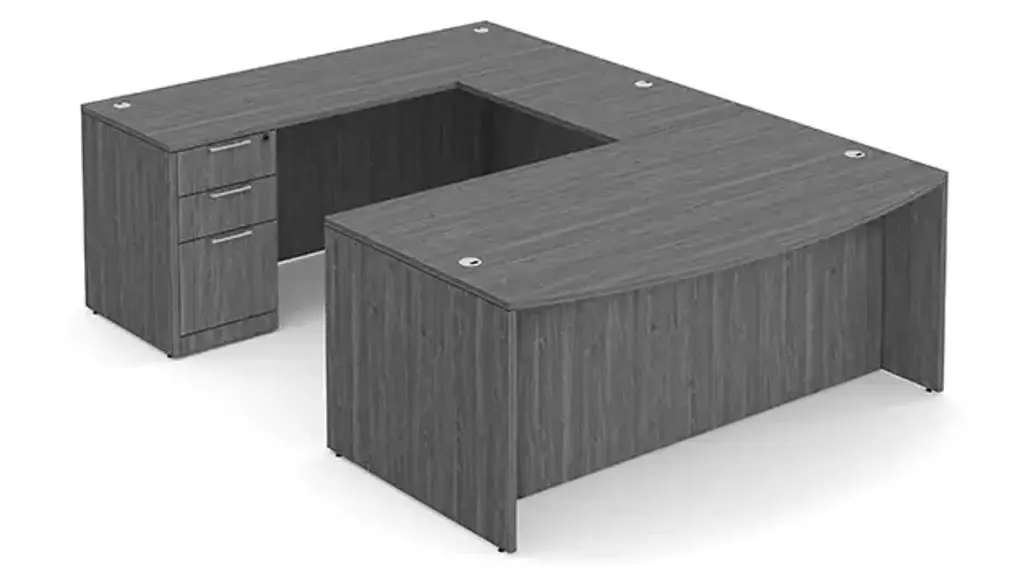 This Desk is Reversible Durable laminate finish. Impact resistant edge protection. U- Desk includes a File File pedestal that locks for security. File drawers accomodate letter or legal files. Ships ready for easy assembly. File File ships fully assembled.