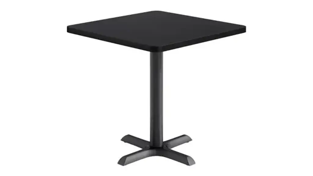Durable and easy to clean pedestal tables. The 36" square table is 1.25" thick with a High Pressure Laminate surface and T-Mold edge. The base is made of durable cast iron. The column is 16 Gauge steel with a 3" diameter. Leveling glides for stability on uneven floors. Made in the USA. Overall Dimensions: 36" W x 36" D x 41" H. Ships ready for easy assembly.