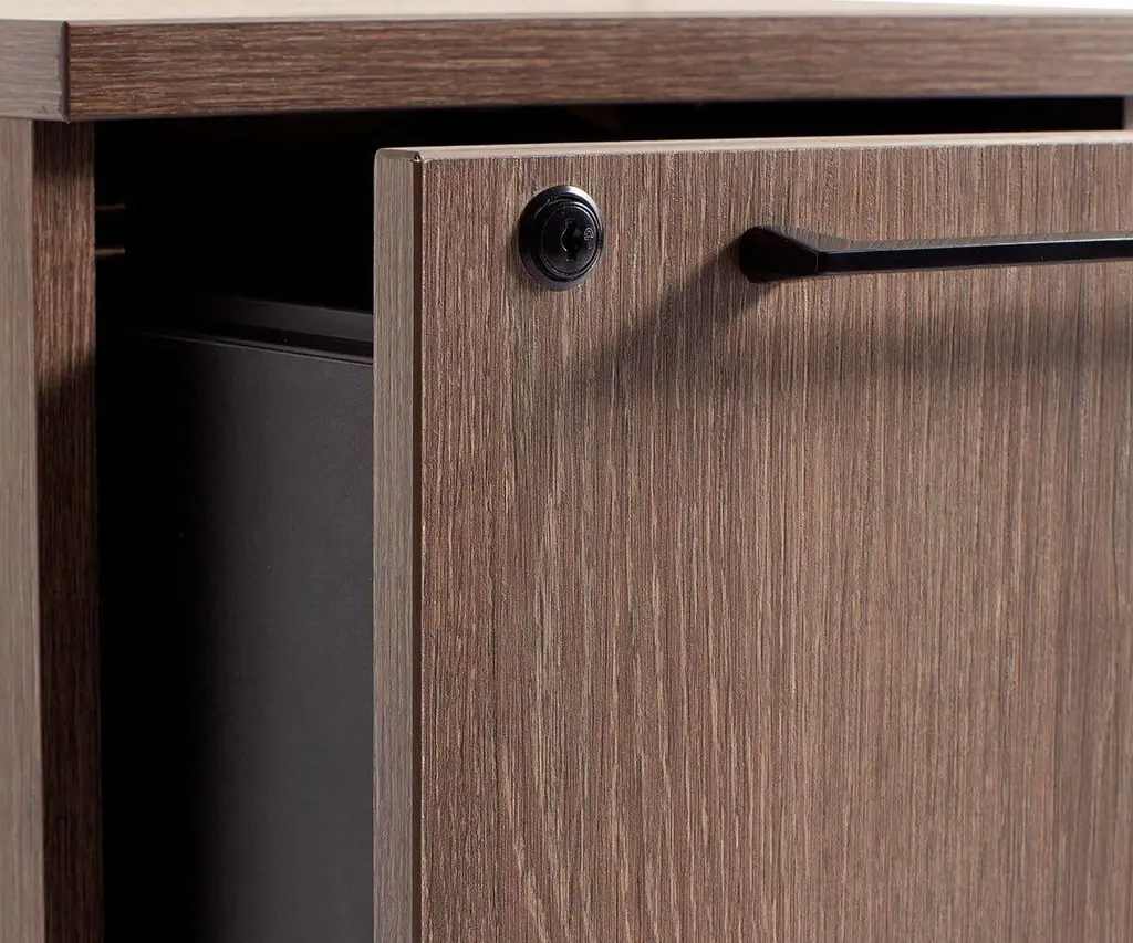 Streamlining your work life starts with organizing your filing system. Make this process easier with the Inari mobile file pedestal. Featuring easy soft-close glides and the ability to lock away all legal and standard files, this melamine-faced filing cabinet with its metal accents is ready and waiting to be seamlessly incorporated into your office.