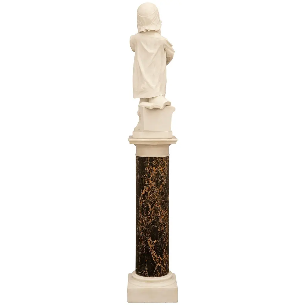 Italian 19th Century Carrara Marble Statue And Pedestal Signed Galli Firenza