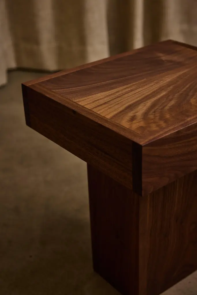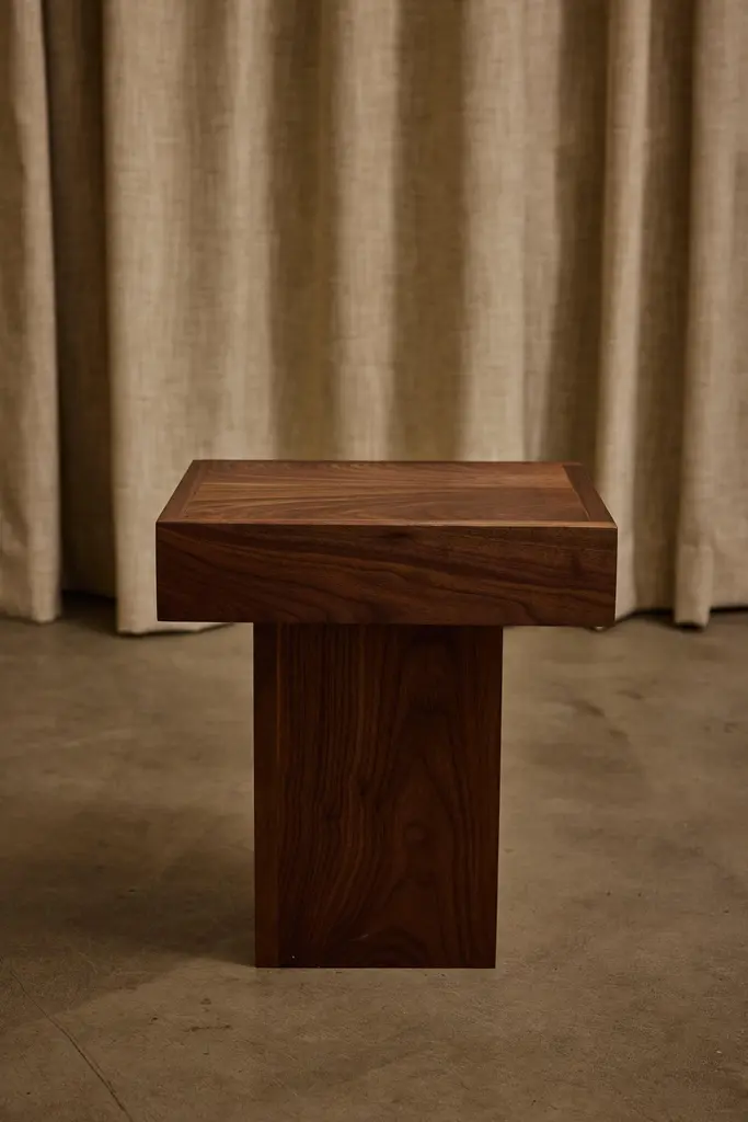 Jura Pedestal by Ah Um Design StudioHandmadeDimensions: D 29.2 x W 33 x H 38.1 cm.Materials: Walnut wood, oil finish.Available in other finish options. Please contact us.This elegant pedestal is handcrafted from rich walnut wood, featuring a beautifully oiled finish that accentuates the natural grain. Its brutalist interpretation of a simple form provides an ideal display for plants, sculptures, books, or any other cherished items. This piece effortlessly combines artistry and functionality, making it a striking addition to any space. Ah Um Design Studio, founded in 2023, is the furniture project of Zack Nestel-Patt, designed and built in Los Angeles, California. Taking from sculptural practice, Ah Um makes furniture that is clearly hand-built, striving for an aesthetic that resonates with warmth and reflects the human hand that crafted it.