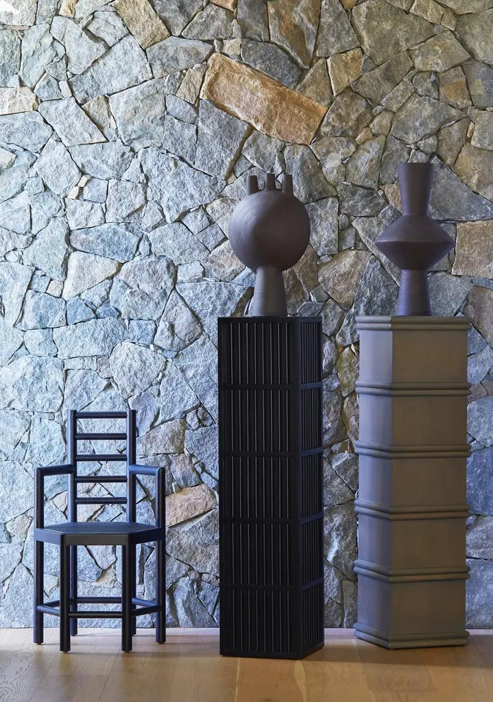 Designed by Josh Greene.Sculptural square oak pedestal with rounded dowel applications.