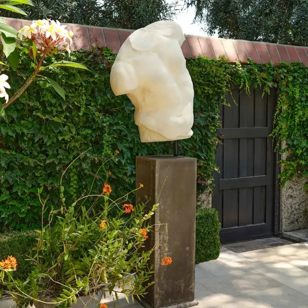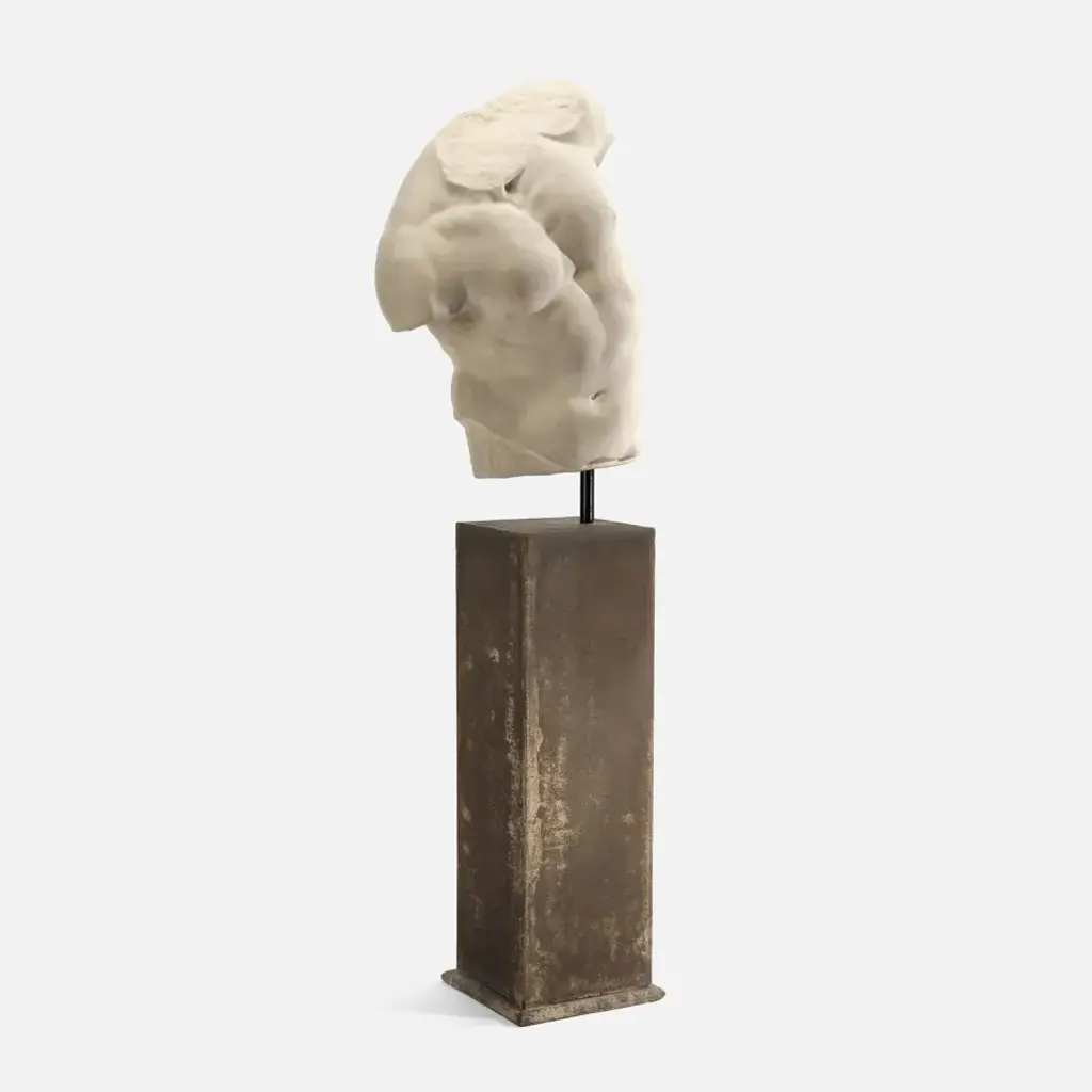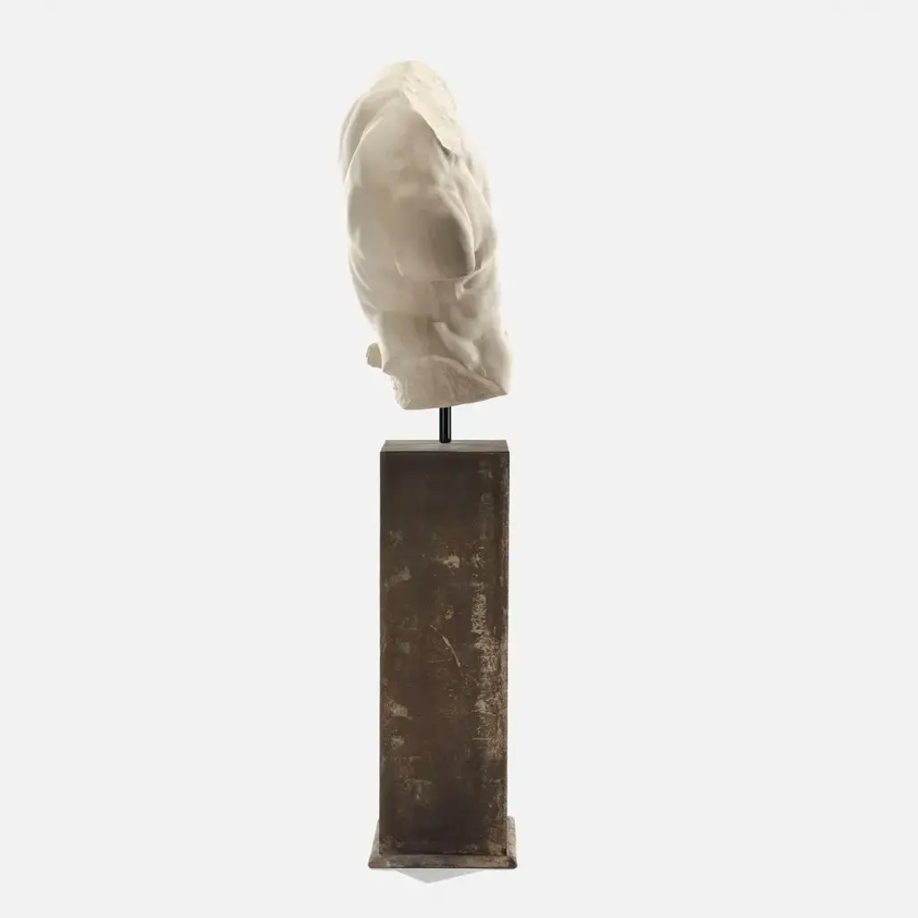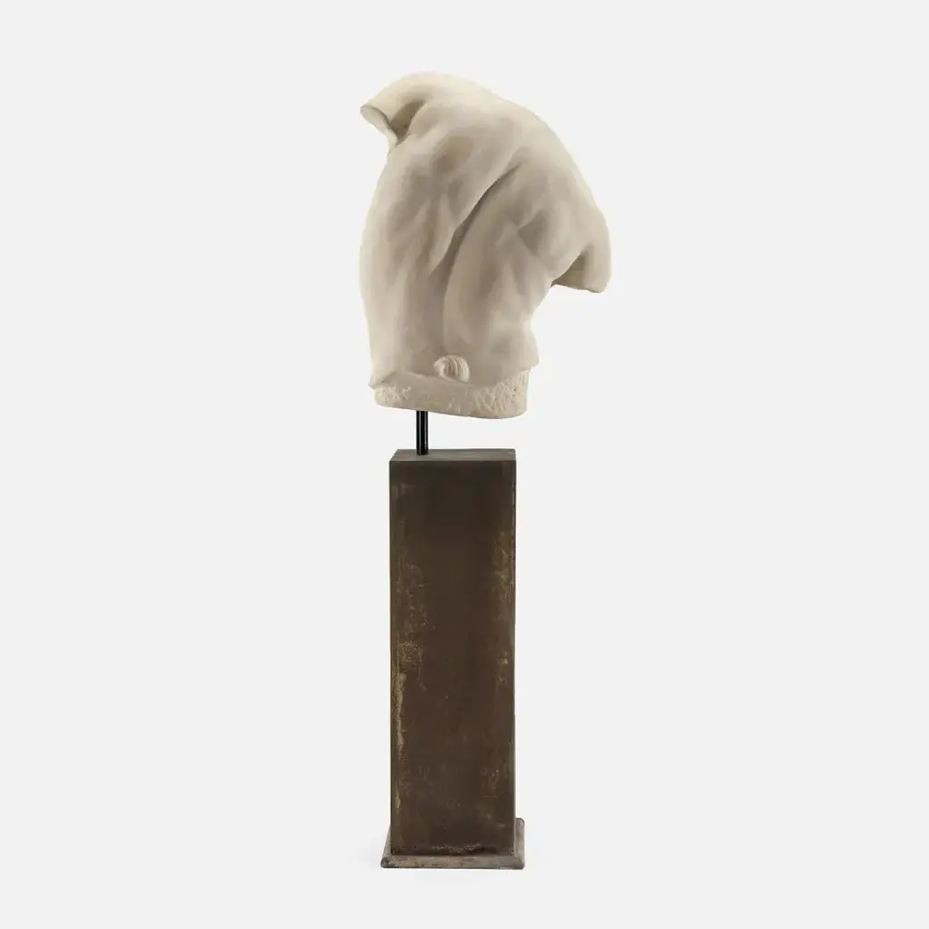 Inspired by European artisans, the Kempsey sculpted torso is crafted from reconstituted stone and set on a sturdy pedestal base. This piece brings a touch of elegance and modern sophistication to any home, blending timeless artistry with contemporary design.