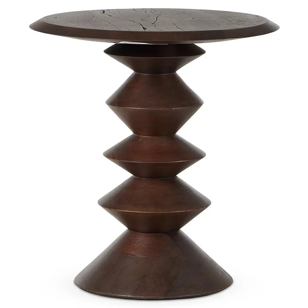 Langston Rustic Lodge Dark Brown Reclaimed Wood Round Pedestal End Table