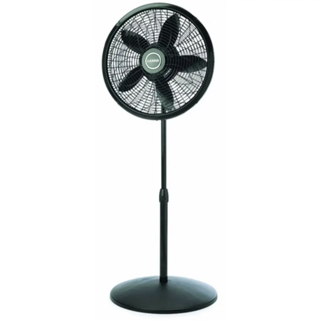 Enjoy a cooling breeze in offices, classrooms, health studios, homes, and more with the 18-inch Adjustable Elegance & Performance Pedestal Fan by Lasko. The generous 18-inch diameter blade provides a comforting flow of cooling air that is adjustable to three quiet, energy-efficient speeds. With 90 degree oscillation and tilt-adjustable fan head, you can set this pedestal fan to blow the air for widespread coverage, creating air circulation throughout the room with a gentle breeze that's always comfortable.