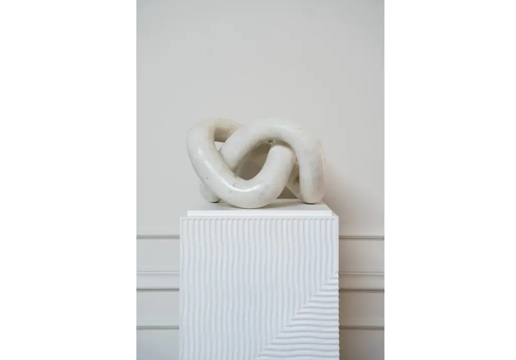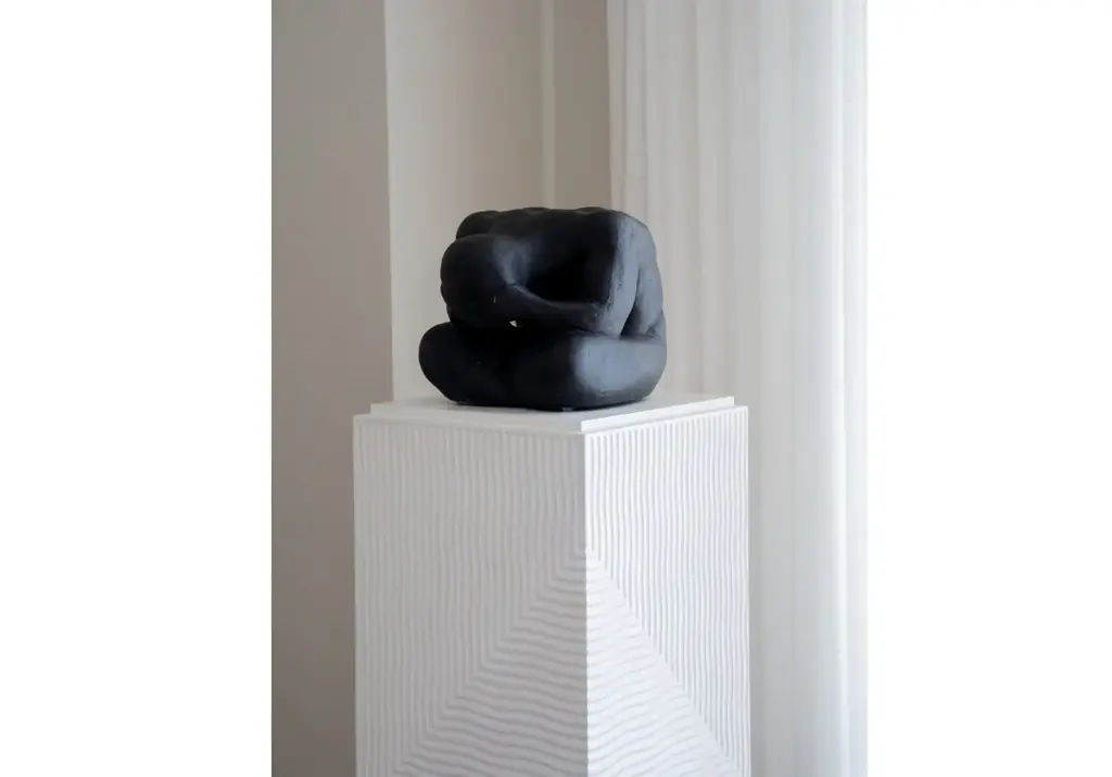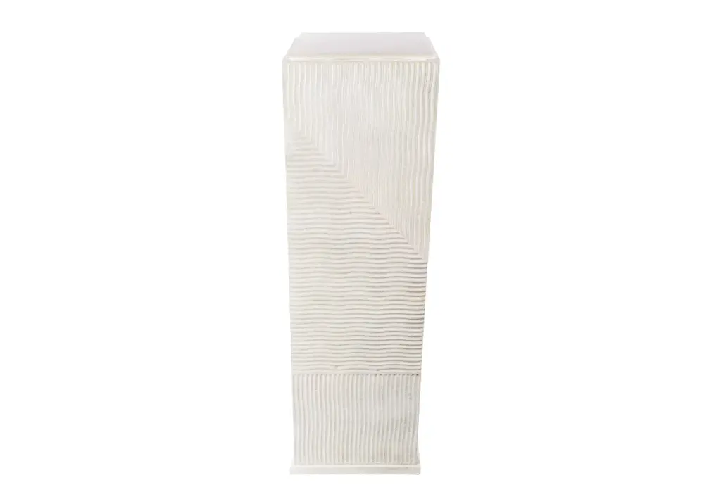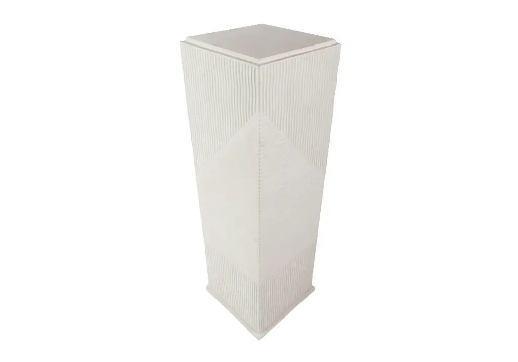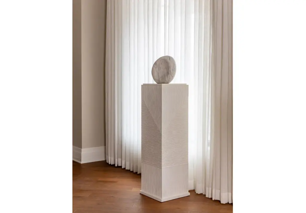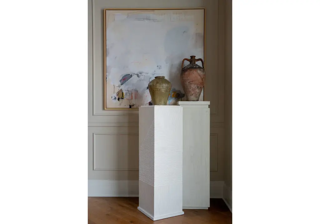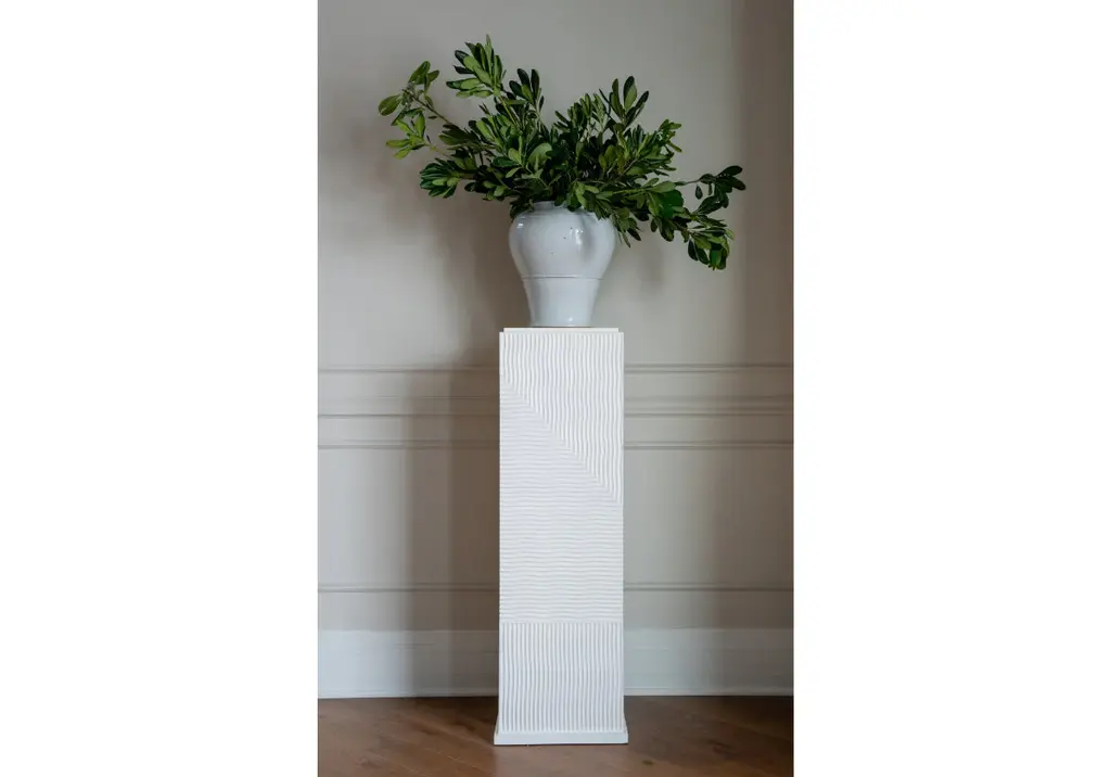 J. Bennett Collection designed by Alice Lane. This striking pedestal boasts a hand-fluted ribbing with a contrasting quarter-turn finished in a rich lacquer. Its eye-catching texture lends an elegant sophistication, easily elevating artwork or sculptures. Its versatile height styles seamlessly into living rooms, bedrooms, entryways, and offices for a tasteful, beautiful look.
