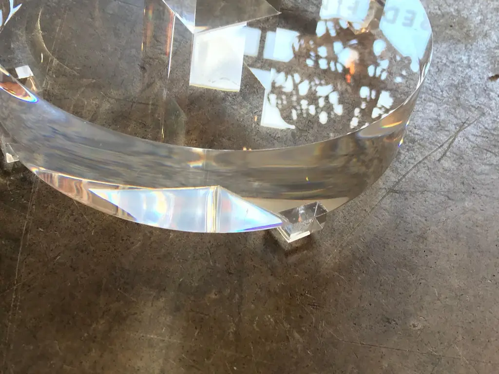 This is a newly made Lucite heavy pedestal side table.