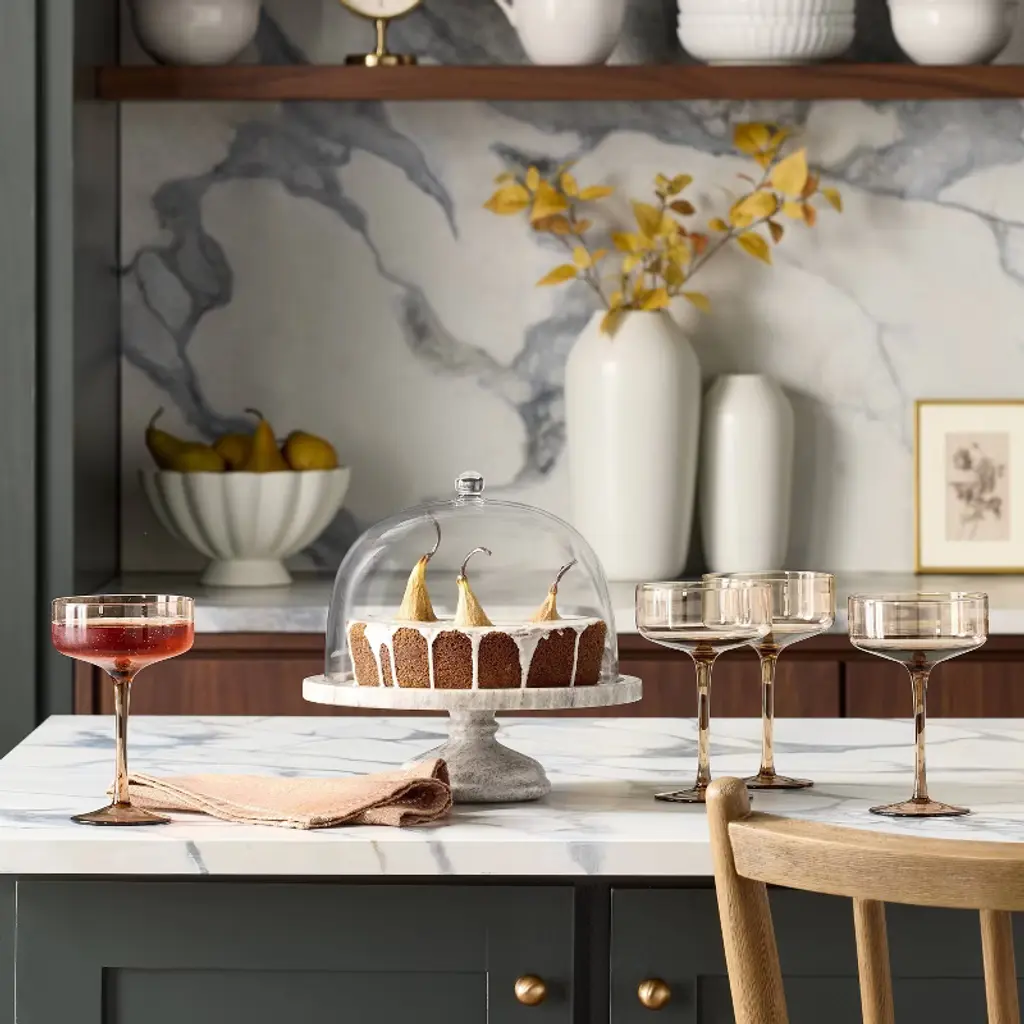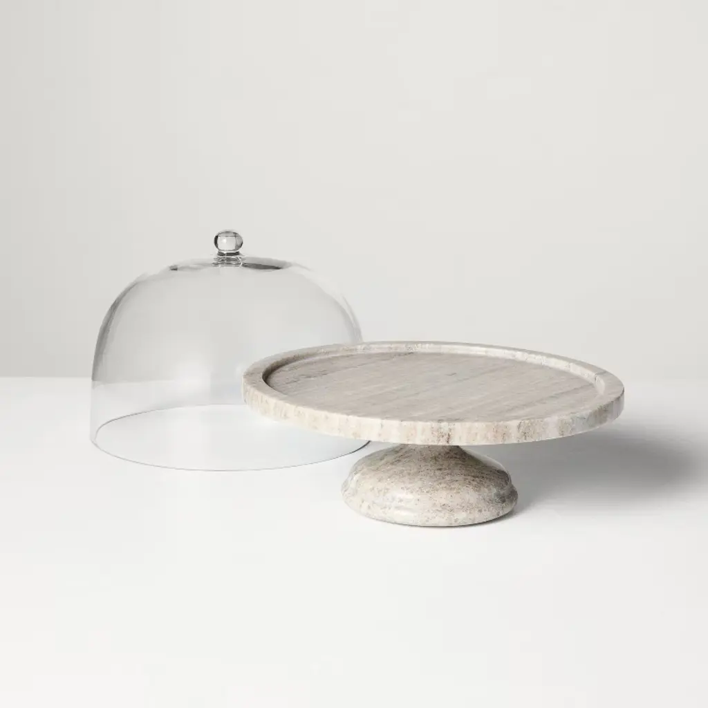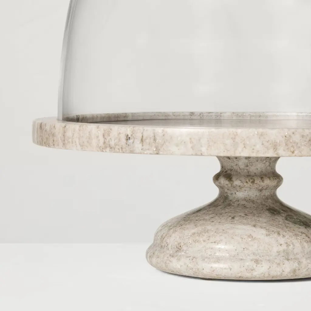 Elegantly display your favorite baked goods or other desserts with the Marble Covered Dessert Stand from Hearth & Hand™ with Magnolia. Designed in a warm gray hue, this dessert stand features a round shape with a pedestal base, making it great for serving cakes, pies and other desserts. This stand is made from marble and comes with a glass lid to help you see the contents while keeping them covered.Hearth & Hand™ with Magnolia: Gather • Create • Enjoy
