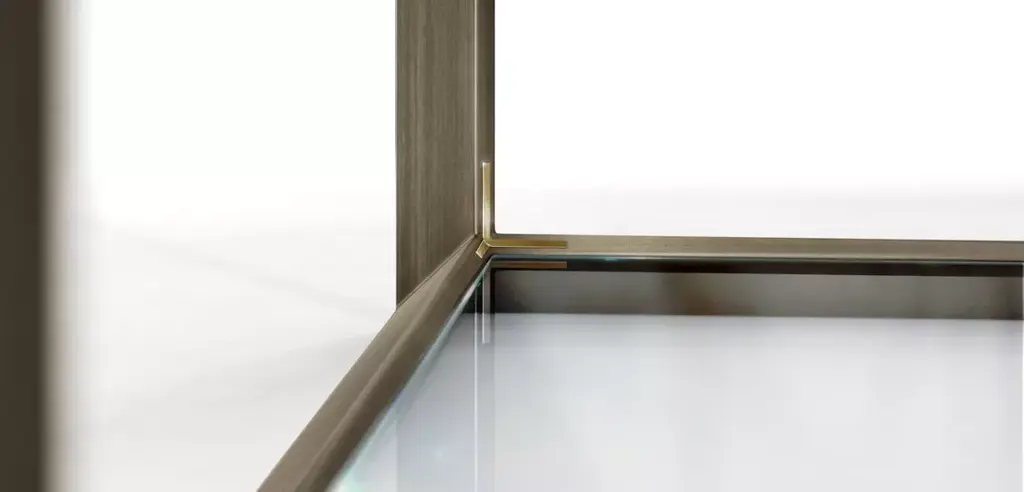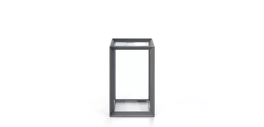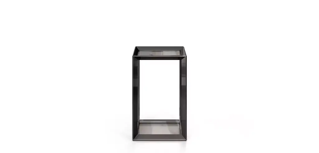 Structure in steel (many finishes available) with staples (3 finishes available), double trays in 8mm-thick clear tempered glass. Made in Europe.