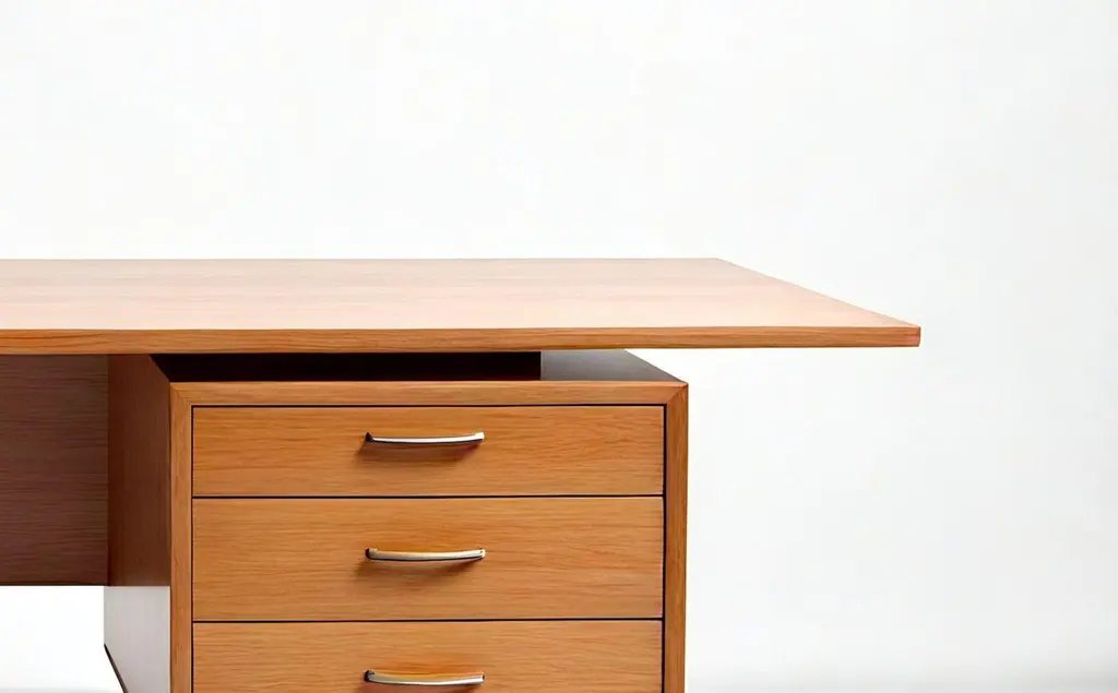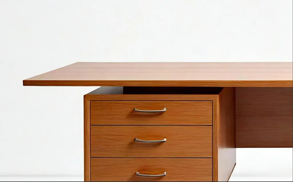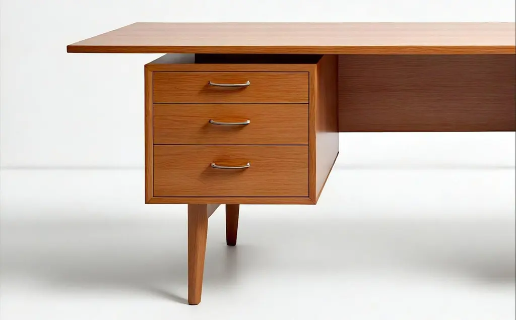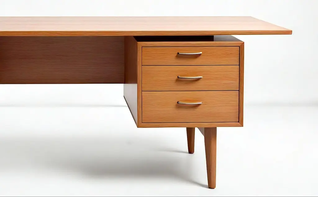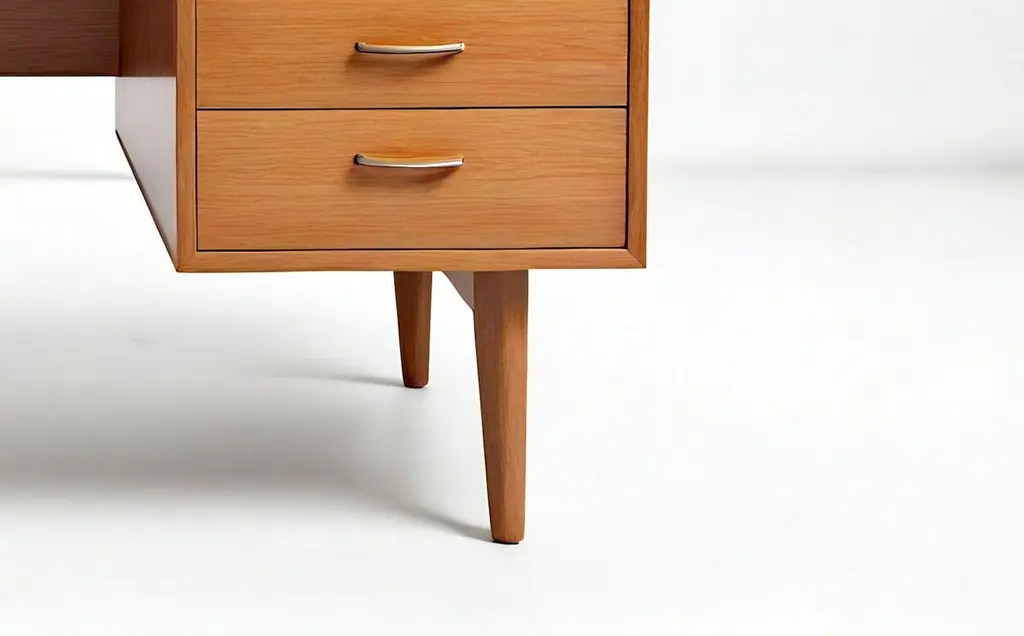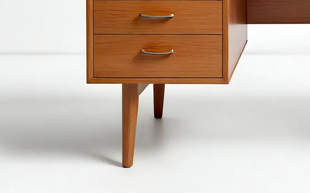 Mid-Century Modern Executive Desk In Solid Wood With Dual Floating Pedestals
