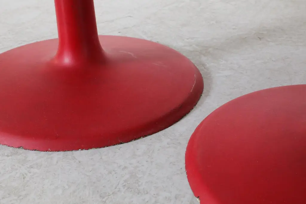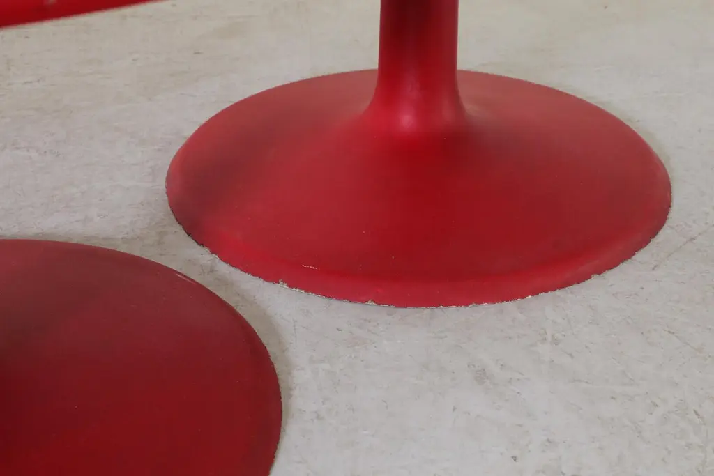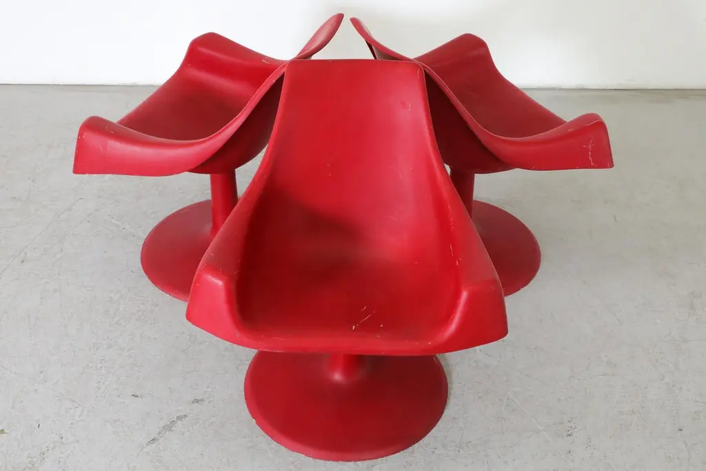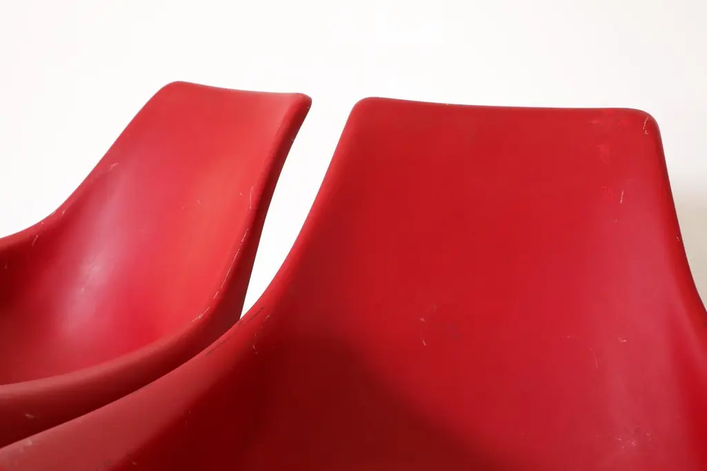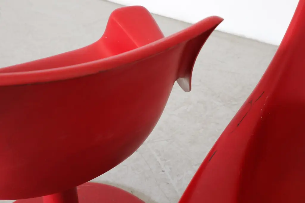 Mod Space Age Saarinen Inspired Red Plastic Moulded Chairs With Pedestal Bases
