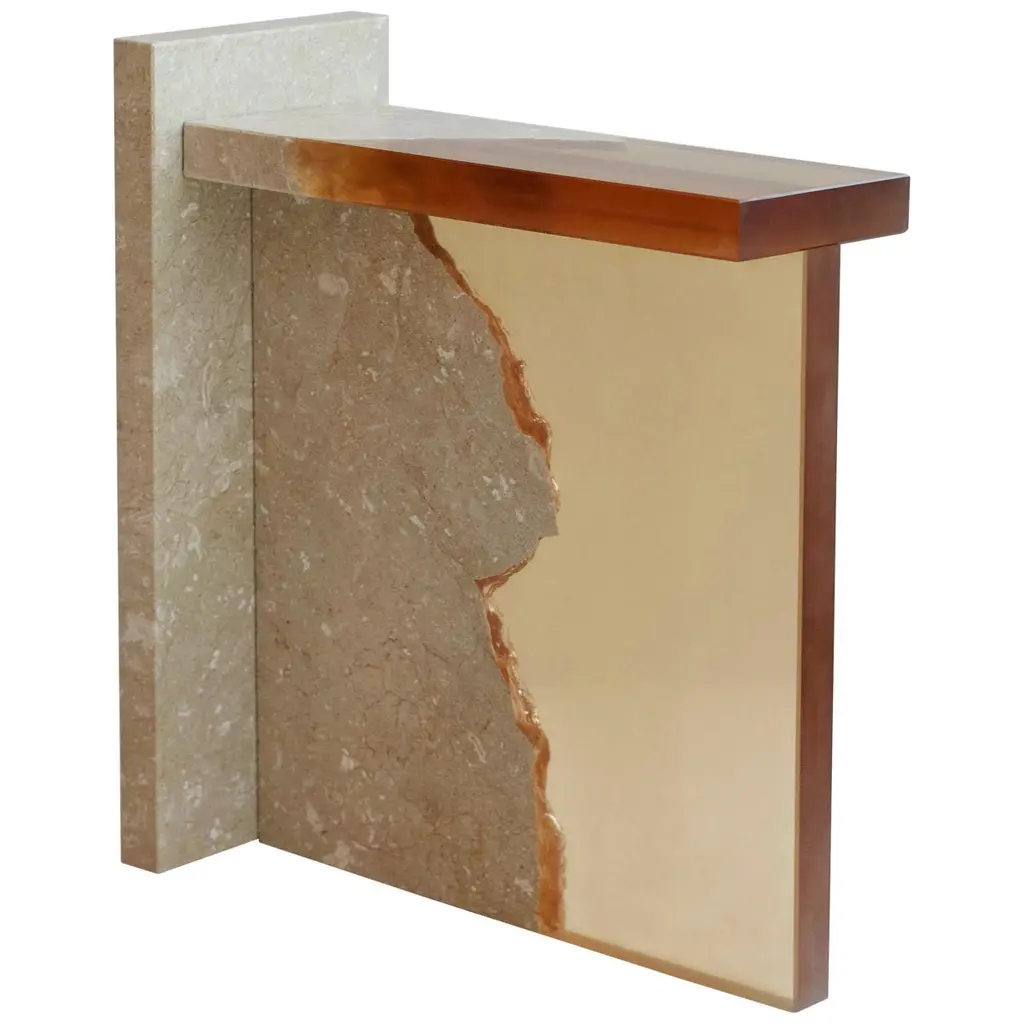 Modern Natura Light Oak Pedestal With Abstract White Glass By Ercole Home