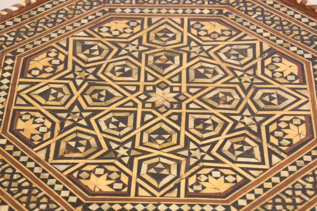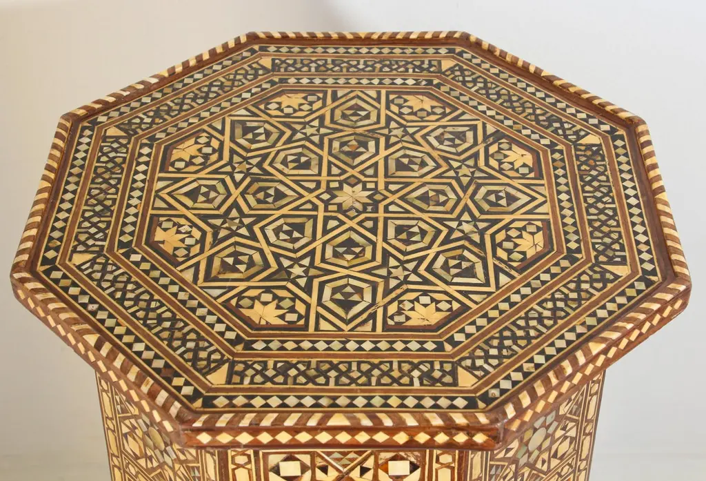 Moorish Handcrafted Octagonal Pedestal Table Inlaid With Mosaic Marquetry