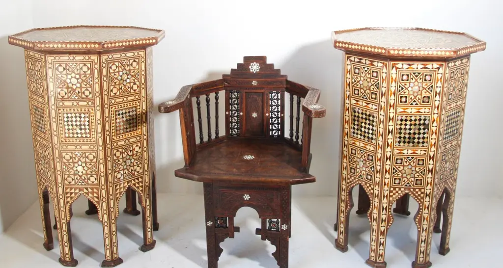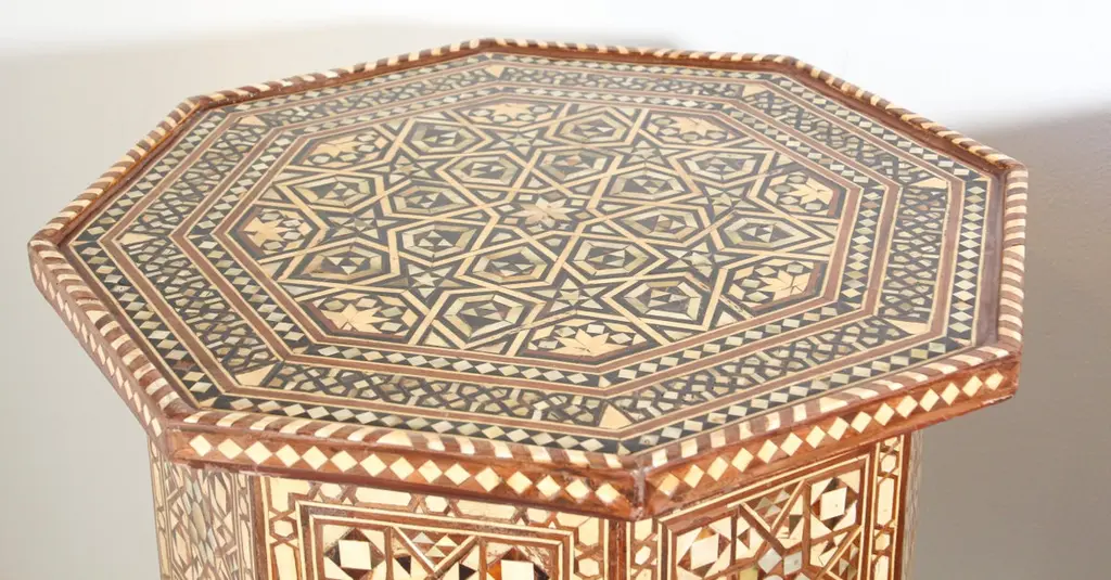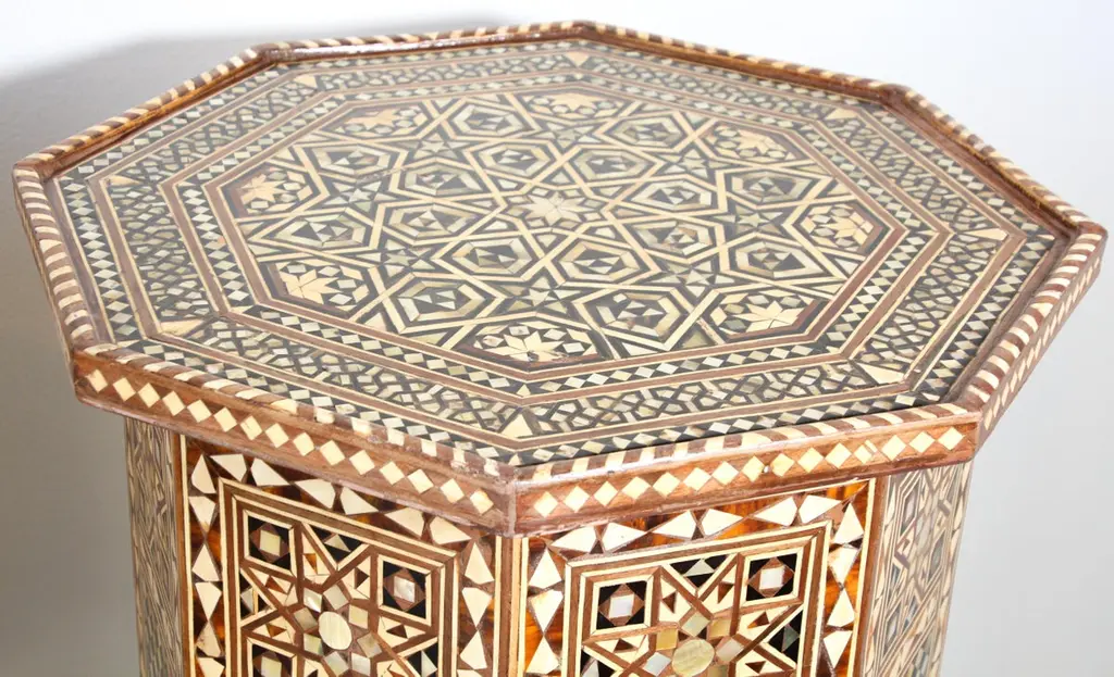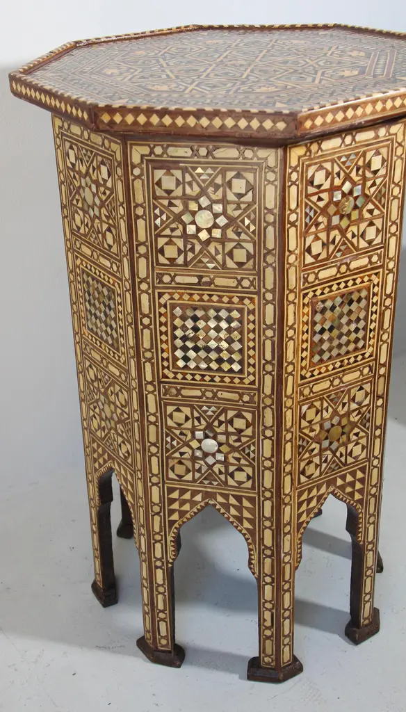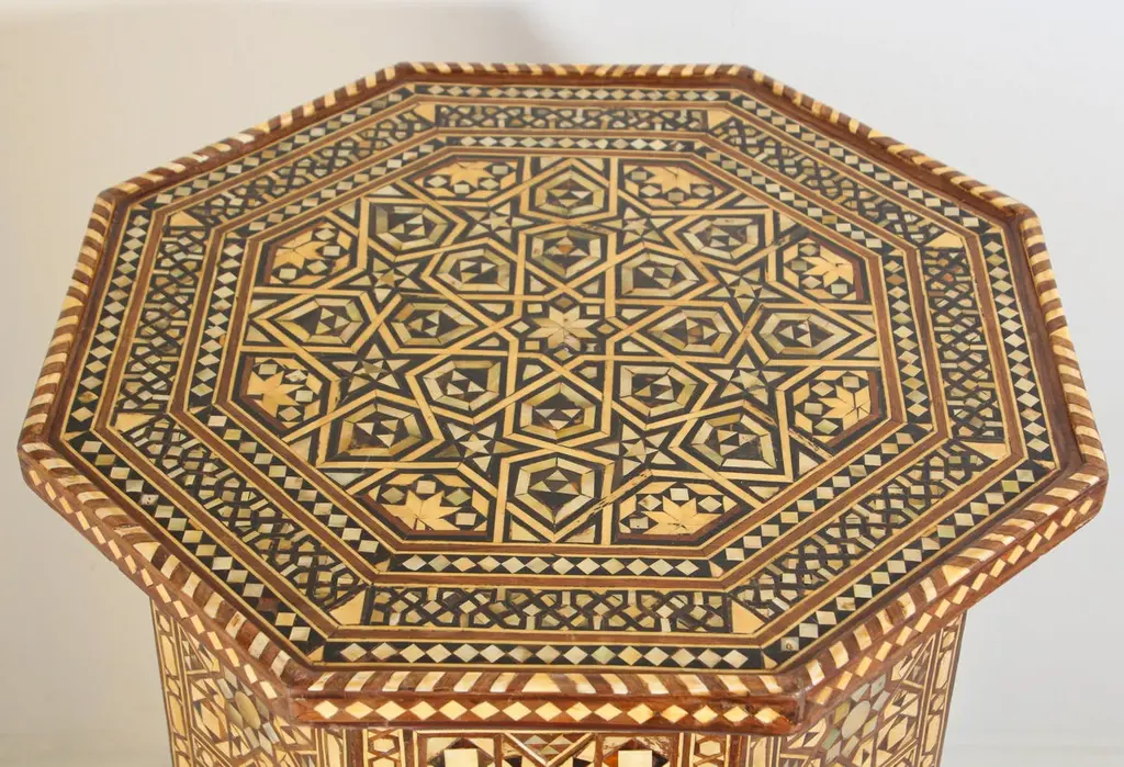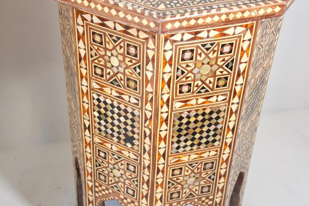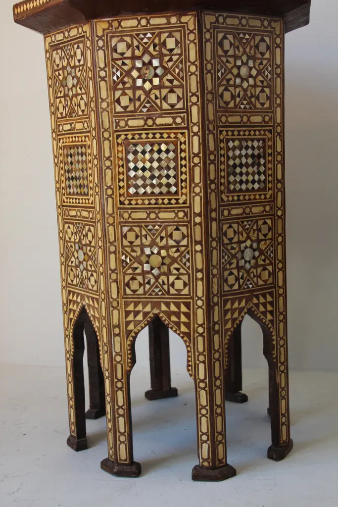 Moorish Moroccan Octagonal Pedestal Tables Inlaid With Mosaic Marquetry