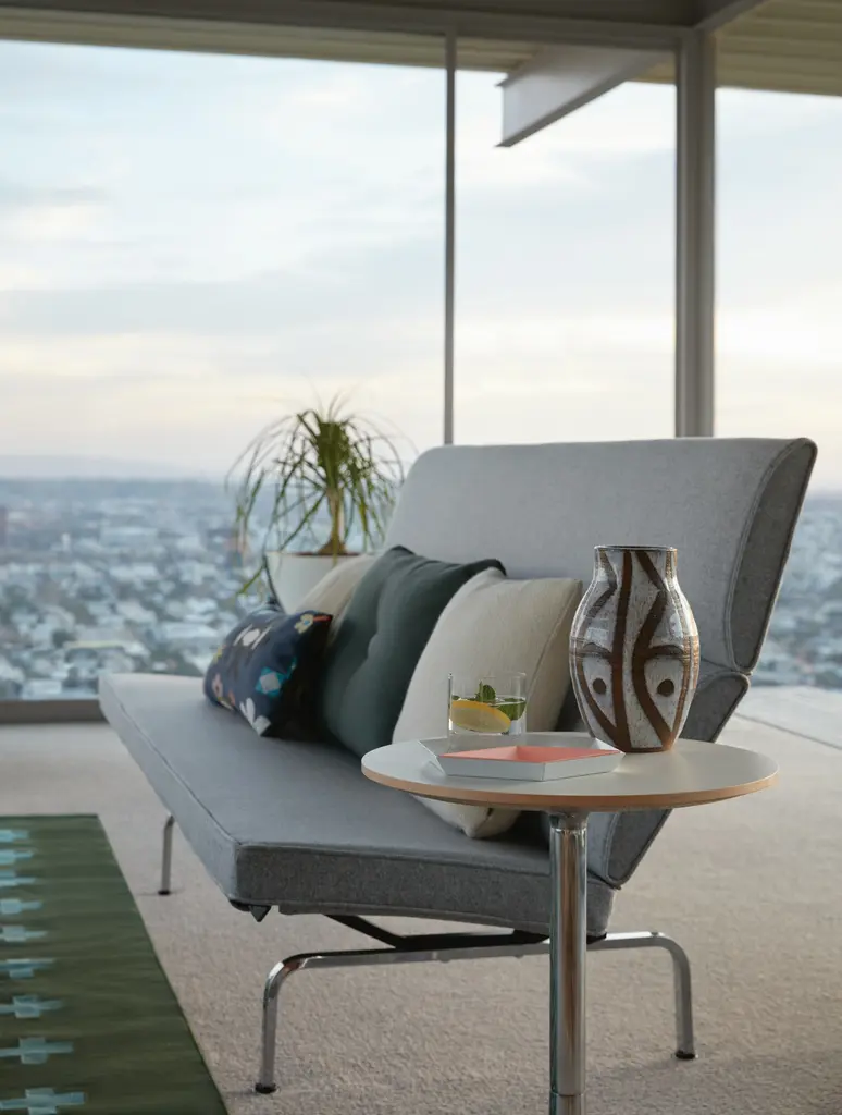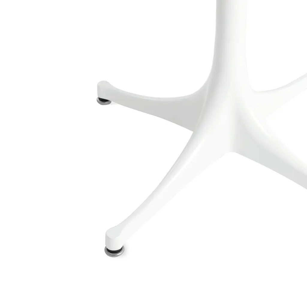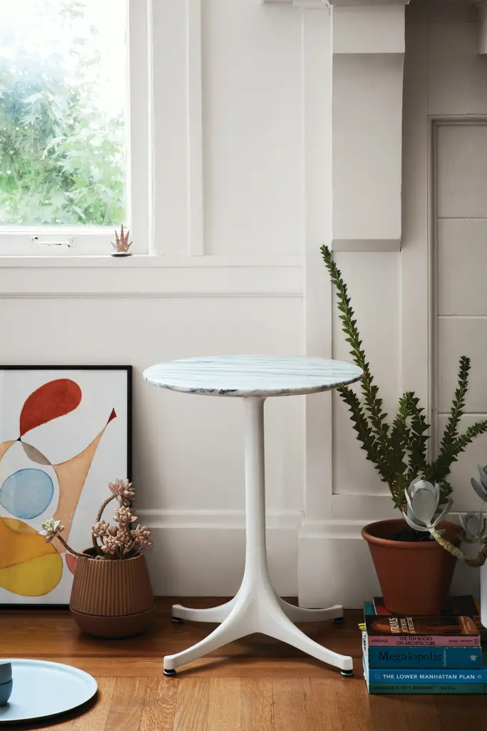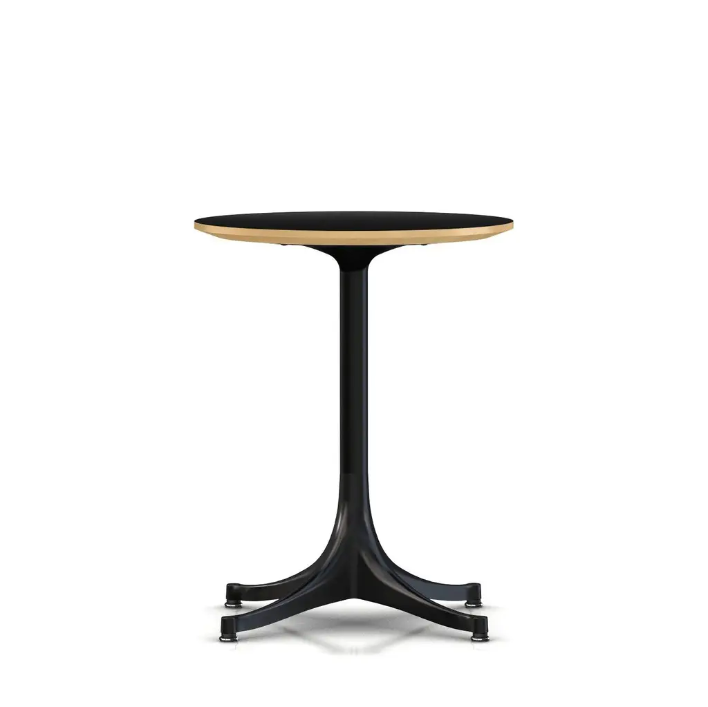 The Nelson Pedestal Side Table (1954) draws upon its designer's hallmarks: simplicity, clean lines, and forms that highlight the beauty of the materials used. This versatile piece, comprised of a top with a laminate or wood veneer mounted upon a sculptural metal base, is ready to serve many ways, from end table to cafe table to meeting table. This the authentic Nelson Pedestal Table produced by Herman Miller. Eco-Friendly Description: Indoor Advantage Gold certification is SCS Global Services' highest level of indoor air quality performance for furniture. The certification ensures that furniture products support a healthy indoor environment by meeting strict chemical emission limits for volatile organic compounds (VOCs).