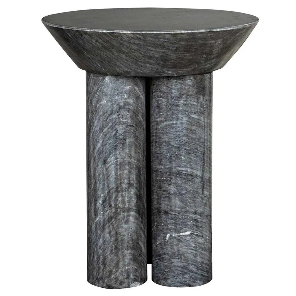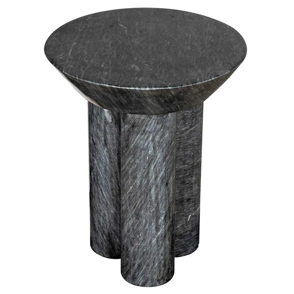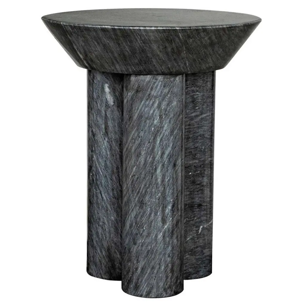 Nyx Industrial Loft Black Marble Round Pedestal Side Table
