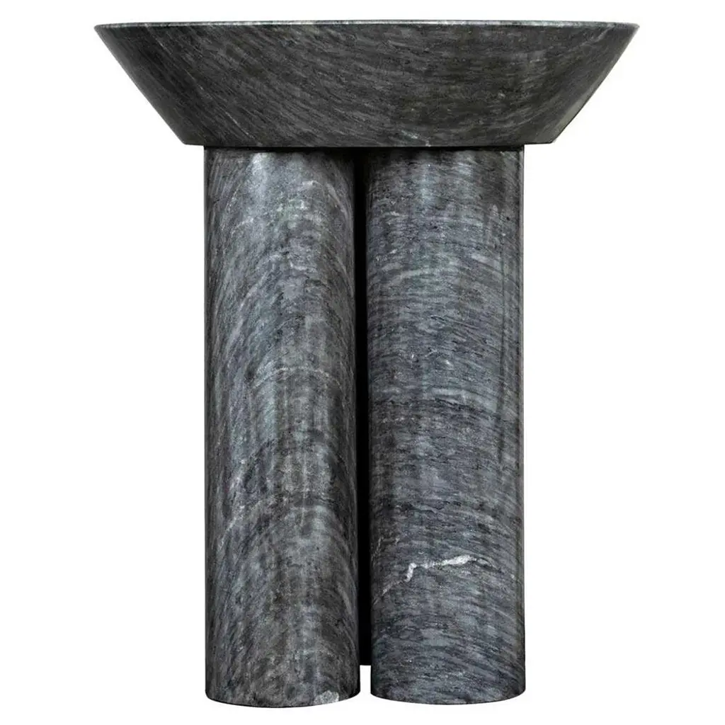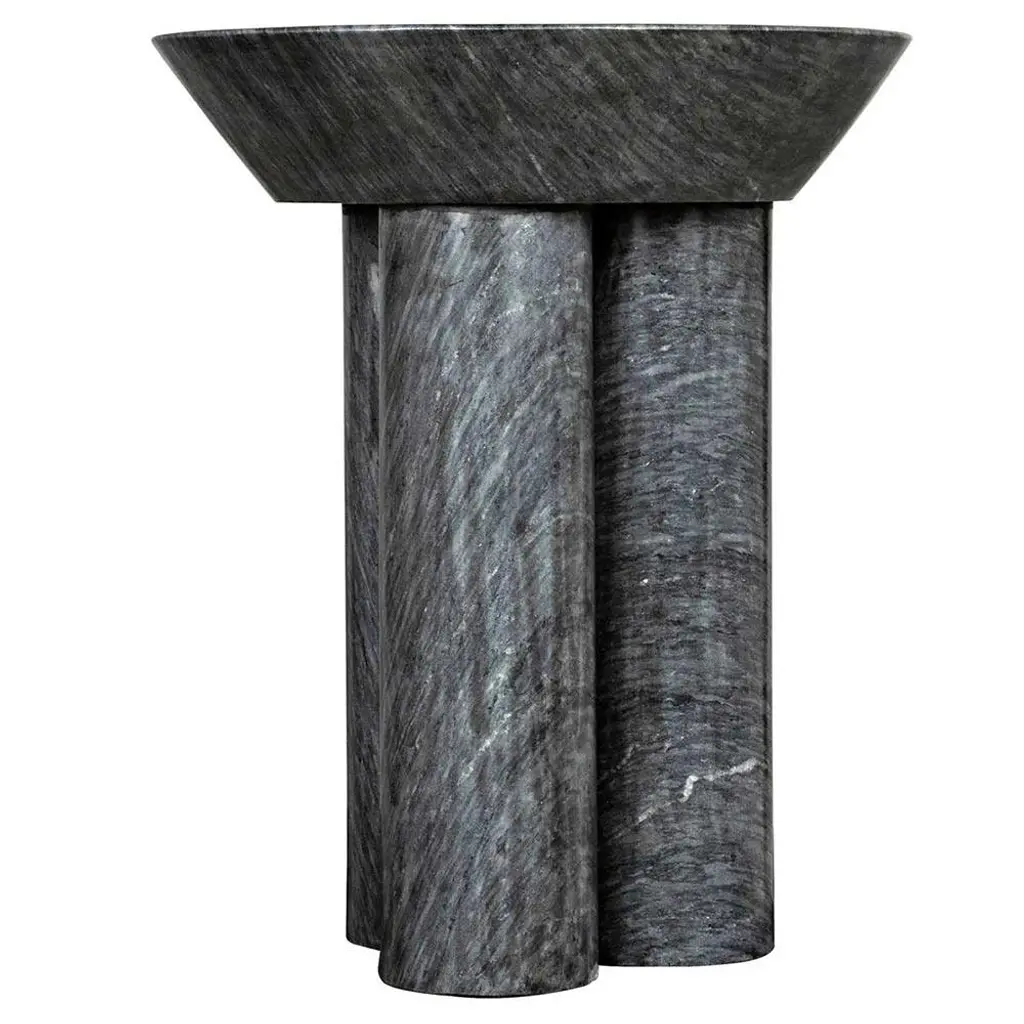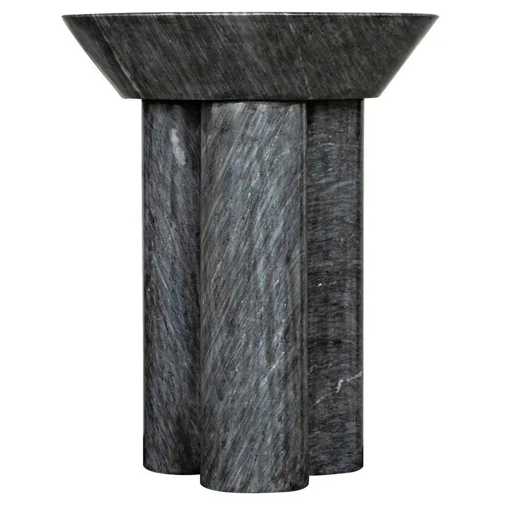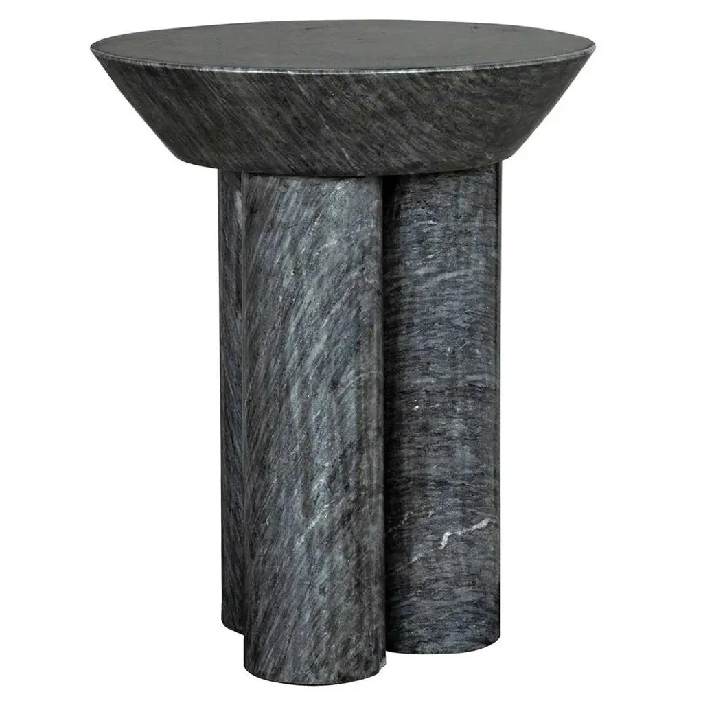 Nyx Industrial Loft Black Marble Round Pedestal Side Table
