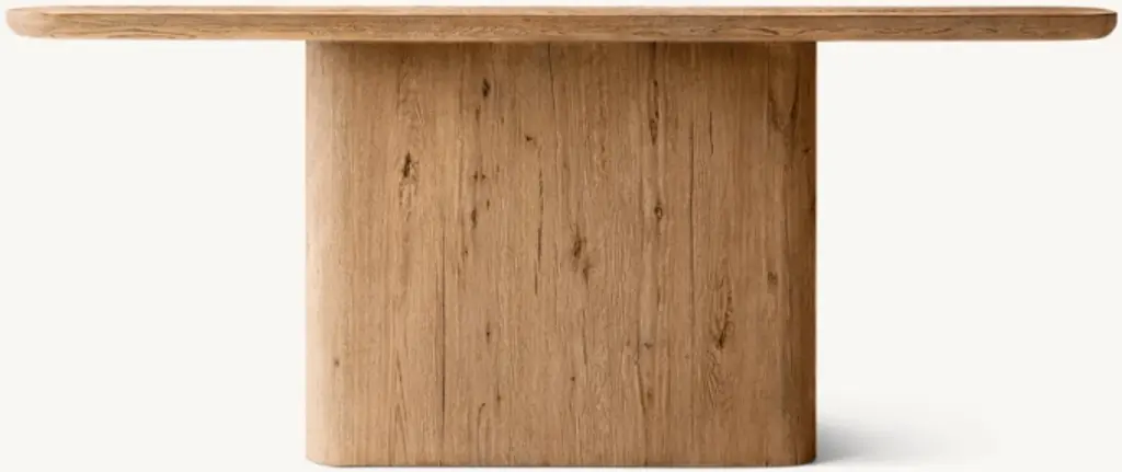Oslo by Harrison and Nicholas Condos is inspired by the simplicity of organic midcentury design. Defined by rounded edges and a pedestal base, the tables are meticulously handcrafted of wire-brushed American white oak. A high-heat finishing process creates distinctive cracking, further enhancing the wood's rich texture and unique grain patterning – an elegant juxtaposition of rustic and relaxed, minimalist and refined. SHOP THE ENTIRE COLLECTION