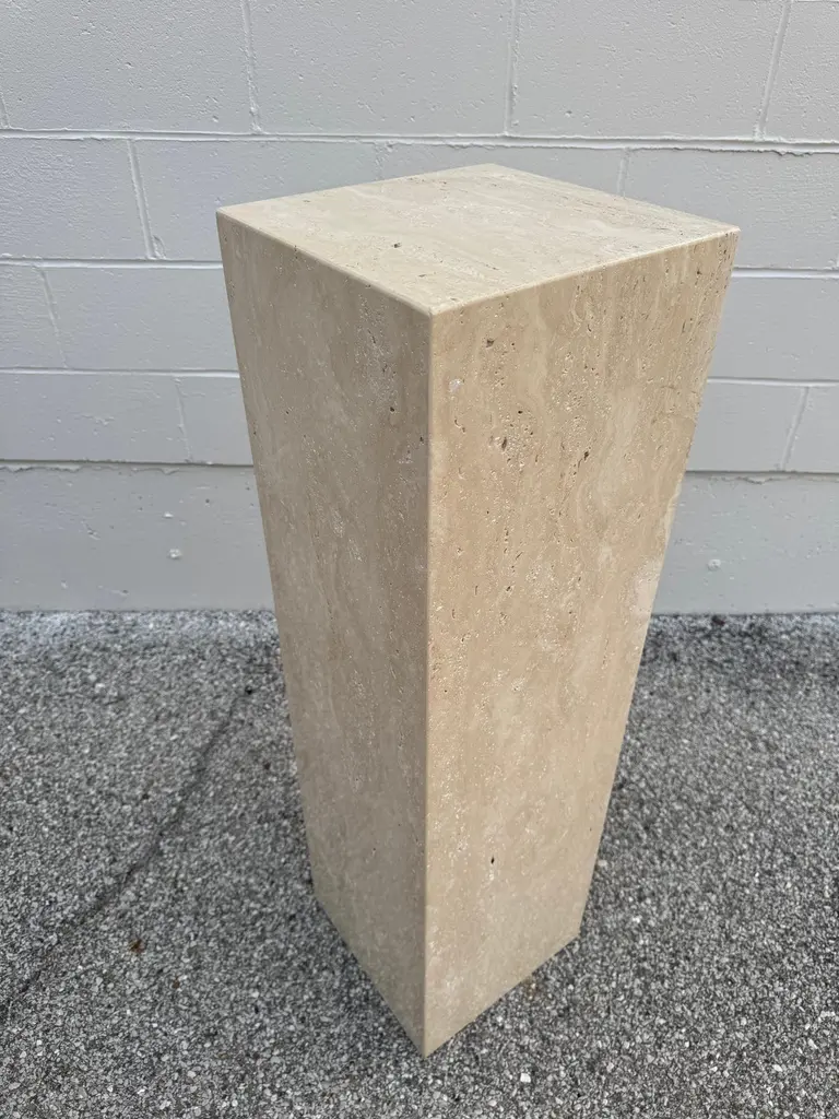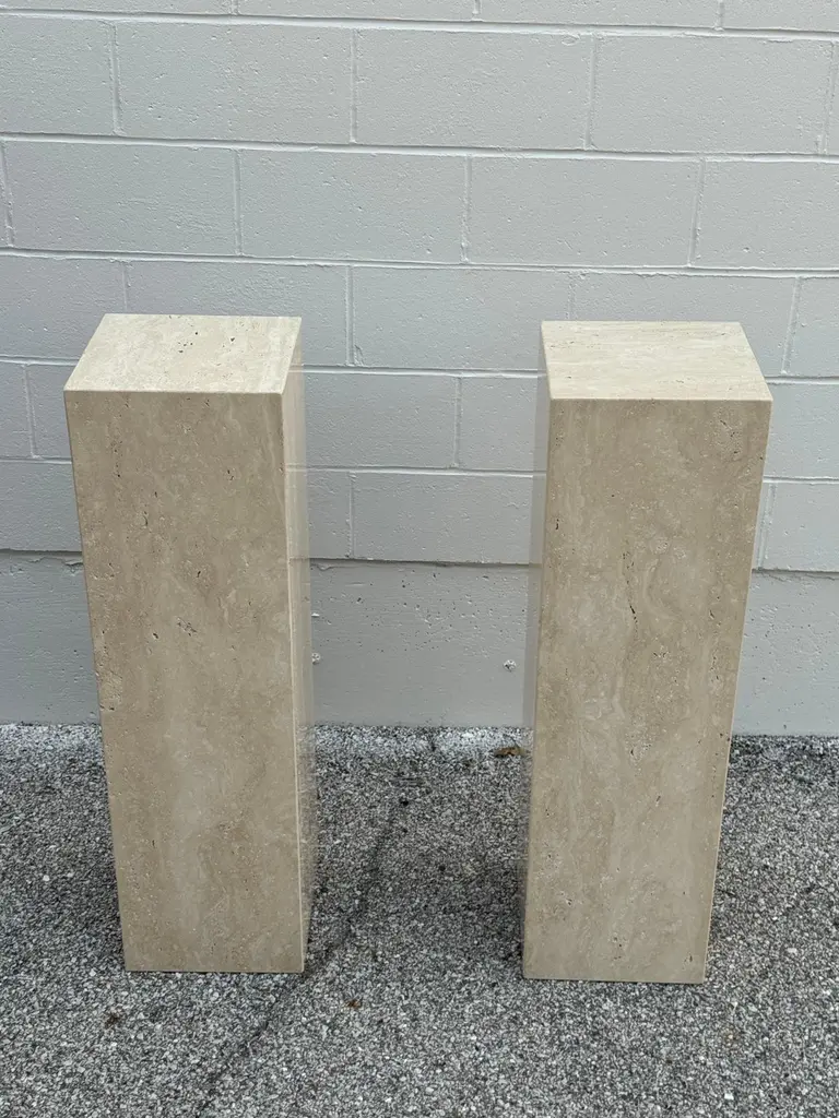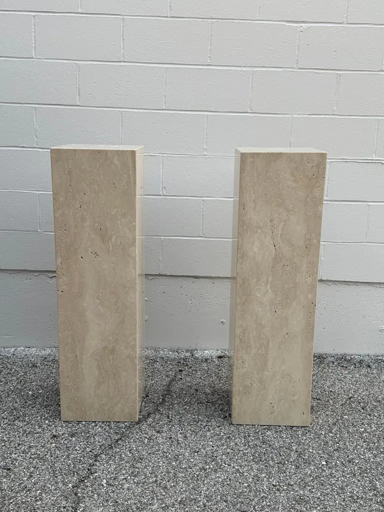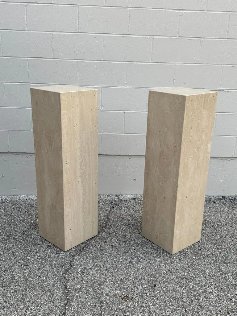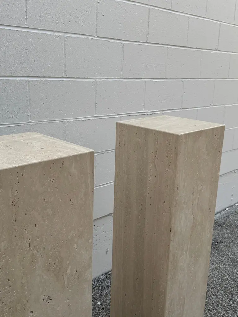Pair Of Vein Cut Italian Beige Travertine Pedestals Art Display - Stands Columns