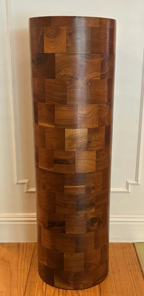 Paul Evans Cityscape Style Walnut Patchwork Burl Round Pedestal