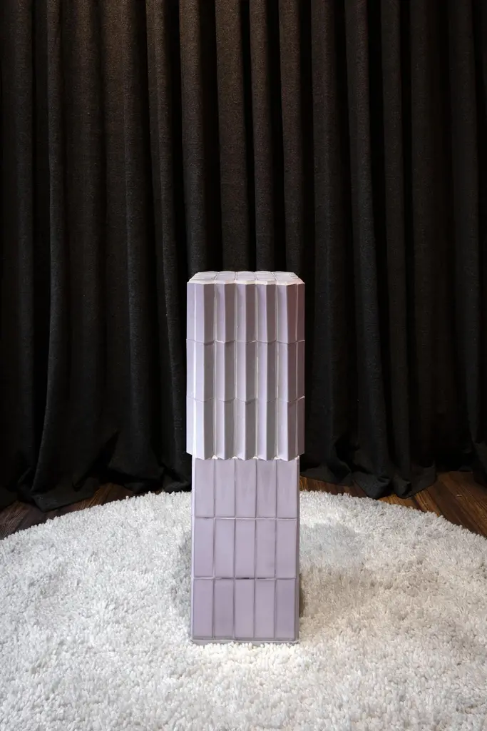 Pedestal Display Column by Txt.UrePerla ValtierraDimensions: W 31 x D 31 x H 92 cmMaterials: Ceramic Exterior/Interior Side Table, Perla Valtierra Ceramic Tiles, Wood interior structure, Epoxic PasteWeight: 25 kgAlso Available: Plastic Wheels upon requestThis new series comprises three pieces that play with the idea of alluding to Mexican prehispanic heritage through their corporeal volumetric proposal. Pedestal honors tradition subtly and playfully while enclaving in Mexican Contemporary Design.Their primary function is to make a statement inside a room, moving ahead of the idea that a pedestal needs to be neutral, a display piece that blends with its environment. On the contrary, the Pedestal series pieces are thought to be seen while enhancing works of art such as sculptures, vases, and any other decorative objects that furnish the most thoughtful interiors.