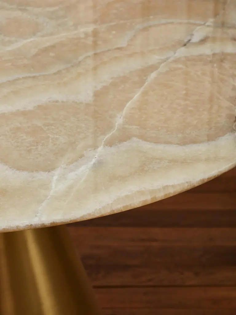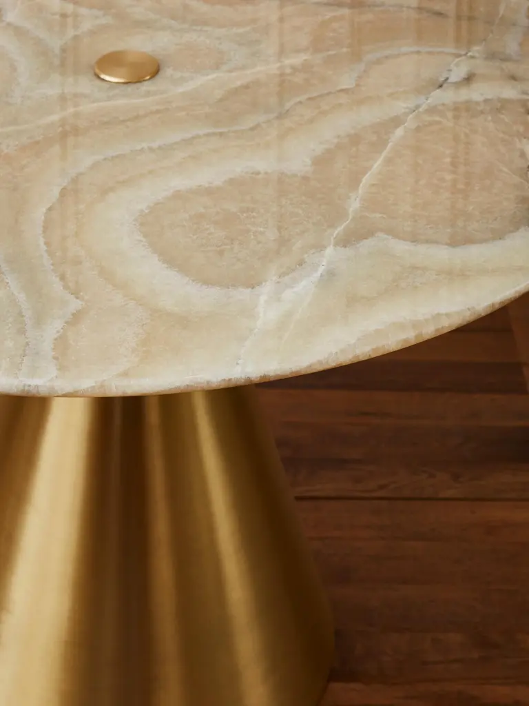 Superb center table in onyx and brass base by Studio Glustin.France, 2021.